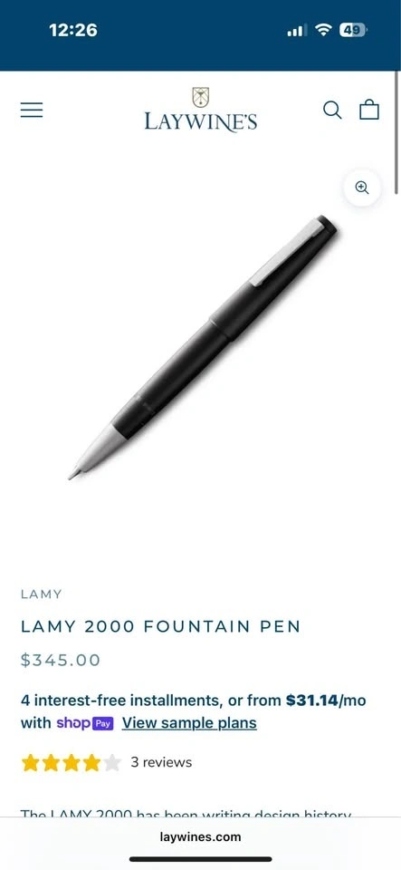 Buy & SellLamy 2000 Fountain PenLamy 2000 Fountain Pen$300Very good condition. Don't use it anymore. No dents or scratches. Comes with box. Perfect smooth medium nib.WHERE TO MEETCheck LocationView MapSELLERFTErin Mills100 reviews0 chats·2 favorites·2 views