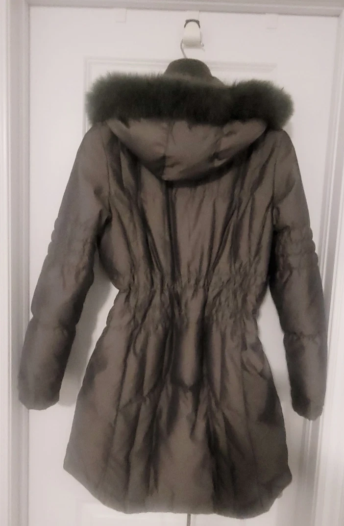 Premium Down jacket, perfect for staying warm this winter! Size M, in great condition. The colour is a lovely dark- gray with a fur trim on the detachable hood. Stylish and practical choice for cold Canadian weather.