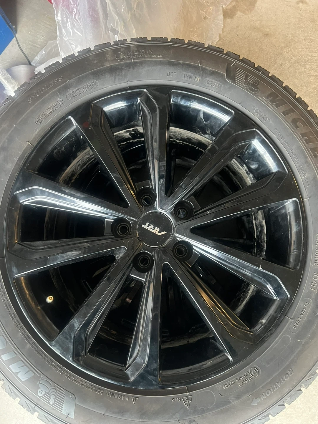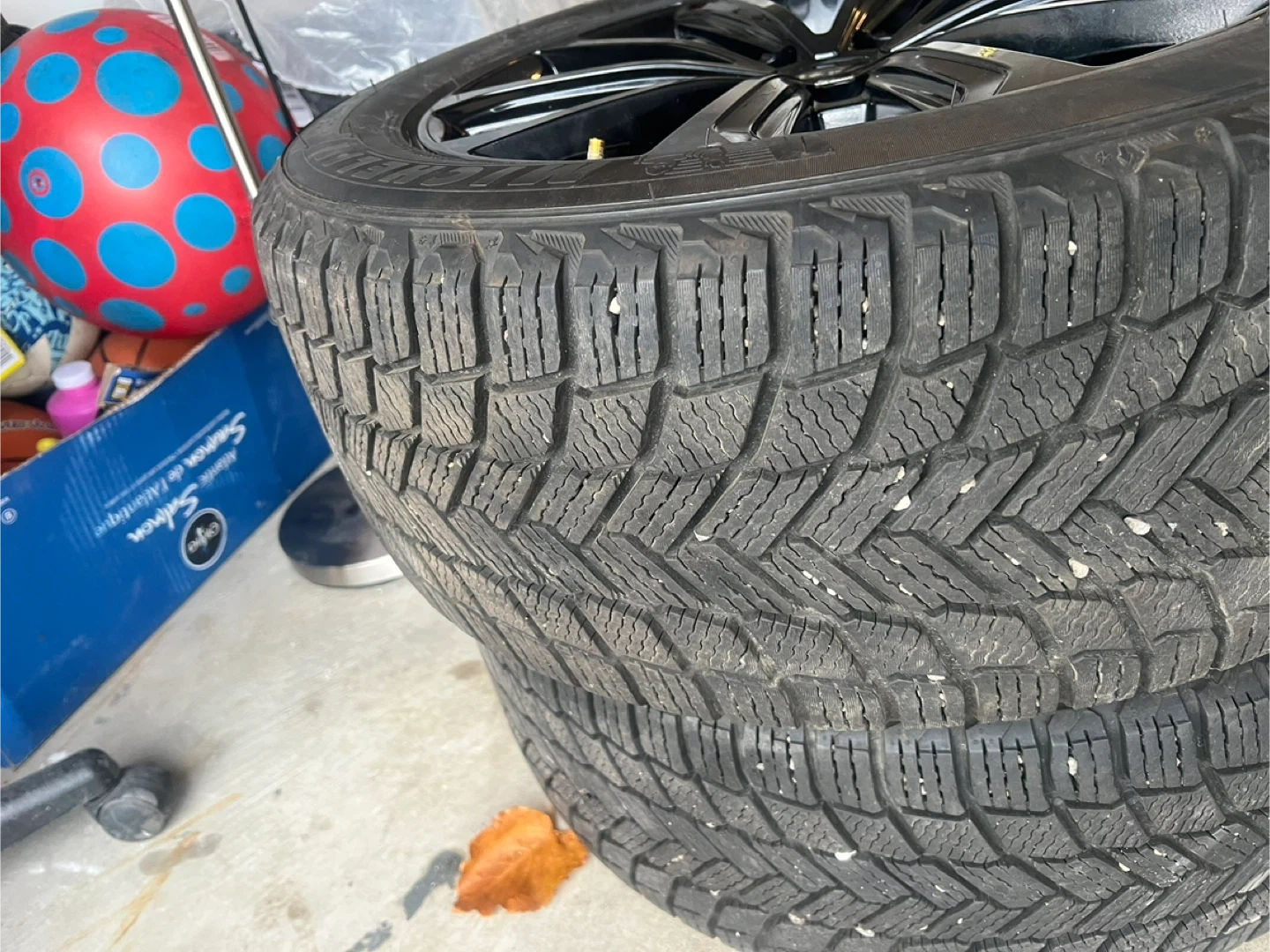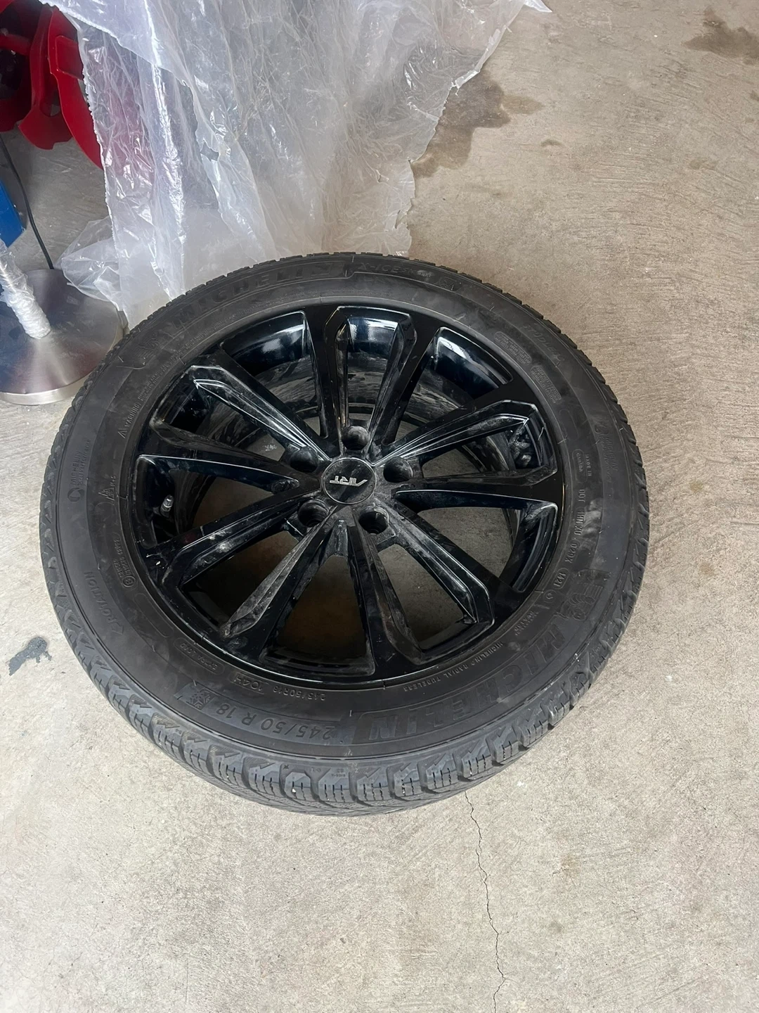 Selling a set of Three black winter Rims and tires. The size is 245/50 R18.