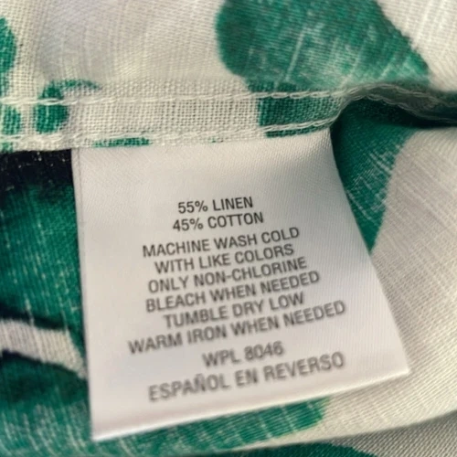 Brand new with tags. The first 5 shots are of the actual product. The rest are for you to see the fit. Material: 55% linen and 45% cotton. Made in Vietnam. Excellent condition, comes from a pet-free, smoke-free home.