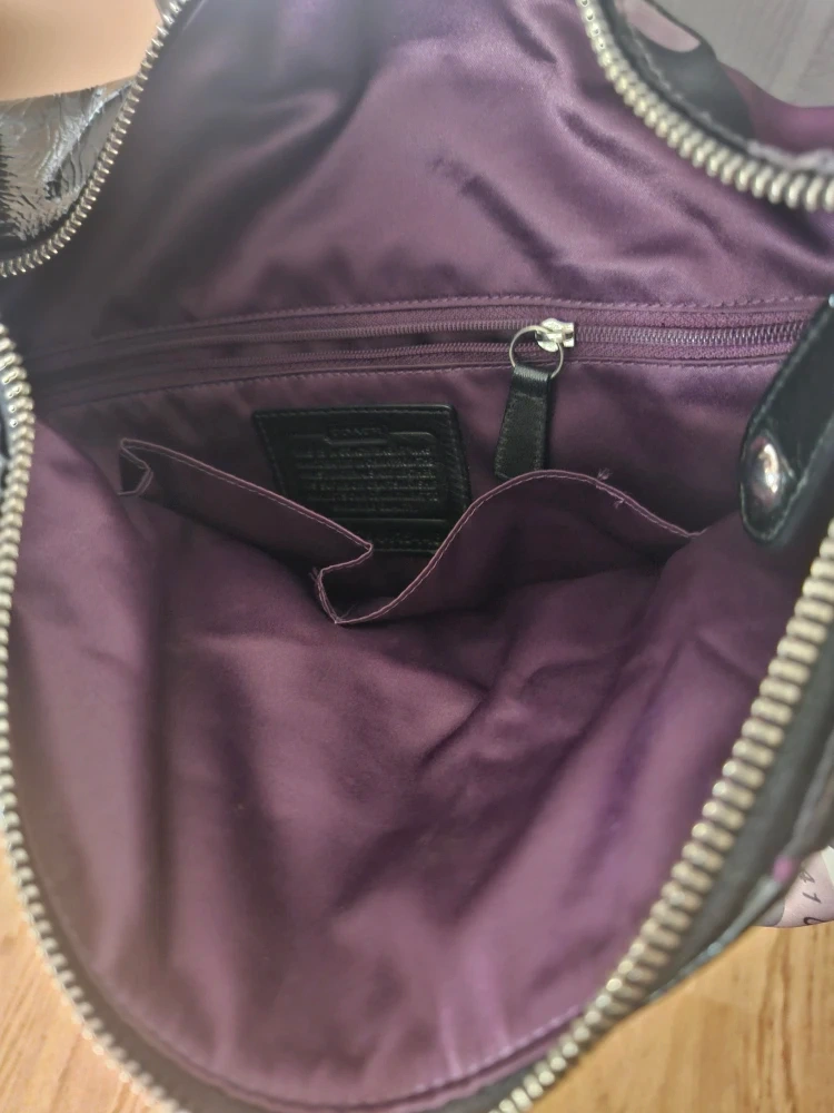 Selling a Coach handbag featuring a stylish purple and black design! It's in great shape and ready for a new owner!