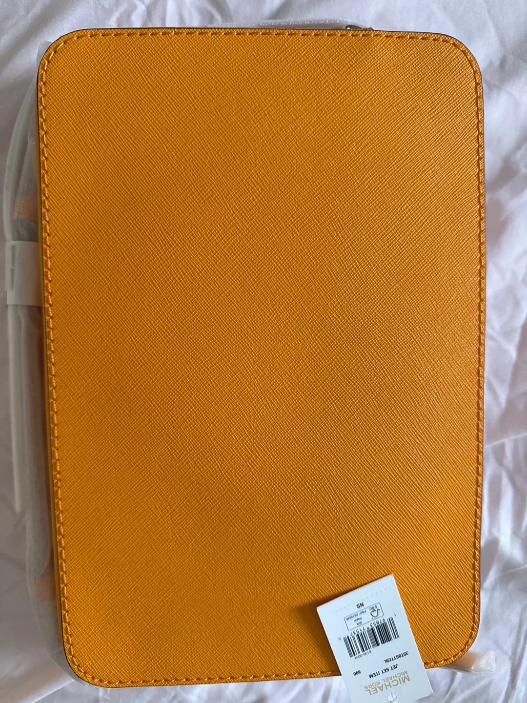 I'm selling a brand new Michael Kors Jet Set Item bag! It's a beautiful yellow color and still in its original packaging. Perfect for adding a pop of color to your outfit!
