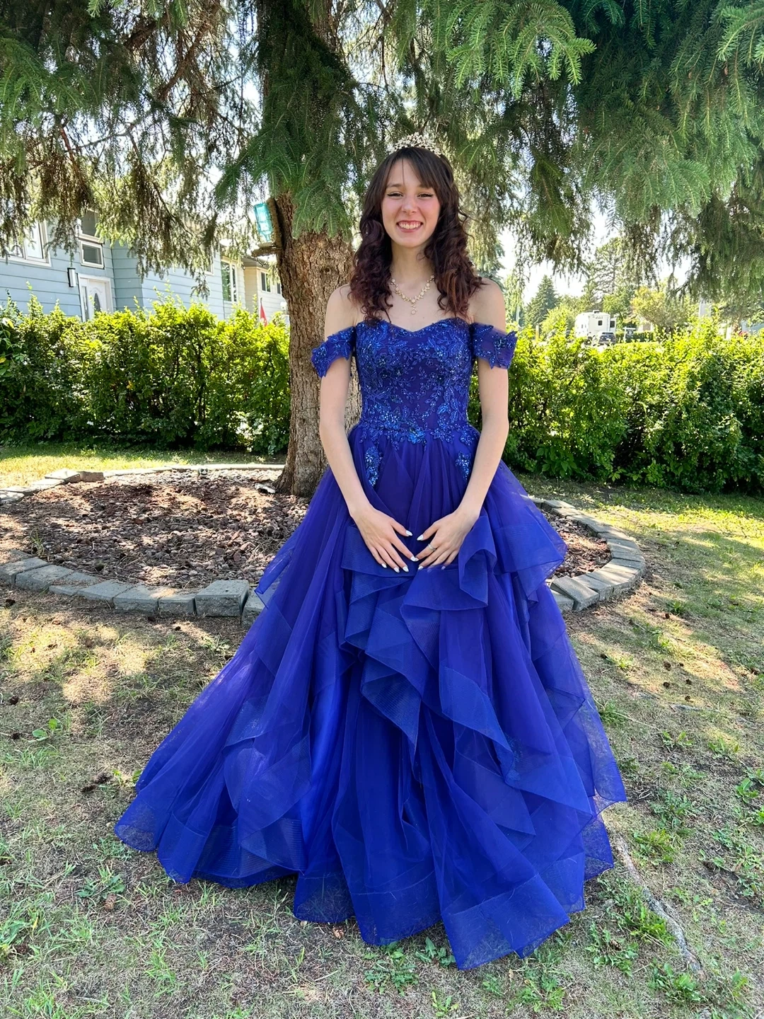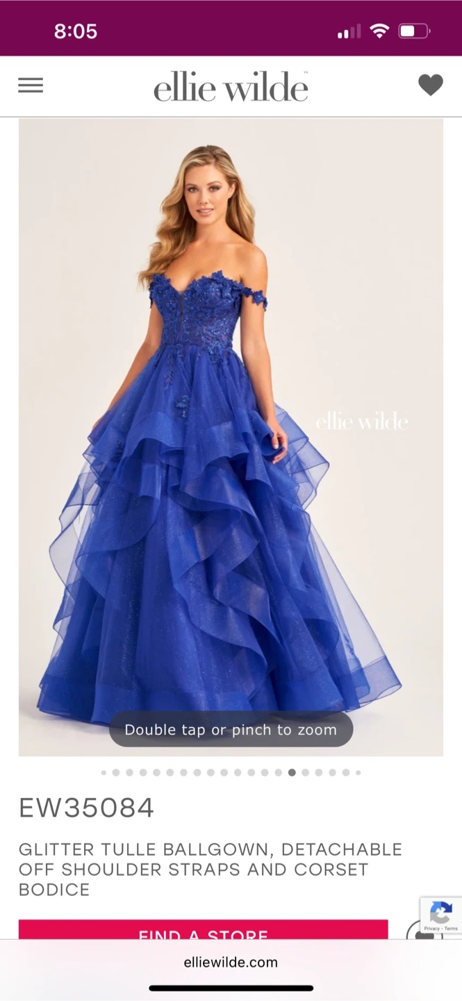 Selling an Ellie Wilde glitter tulle ballgown! It features detachable off-shoulder straps and a corset bodice. The model number is EW35084. Used it once for my grad dress and it ’s been sitting since 🙂.