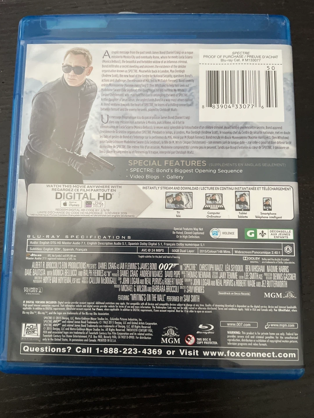 Selling a Blu-Ray + Digital HD copy of Spectre 007. It's in great shape and ready for a new home! Enjoy Daniel Craig as James Bond in this action-packed film.