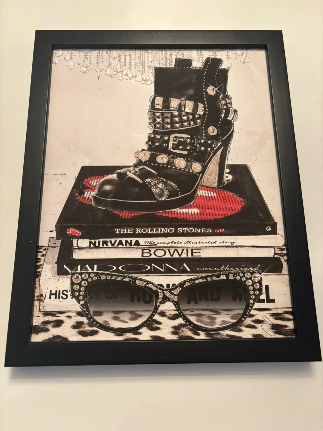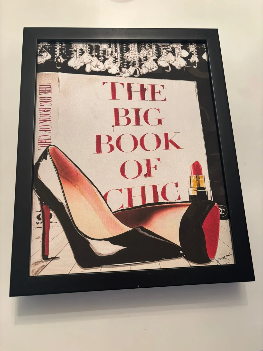 I'm selling a set of two fashion art prints from Homesense. They feature stylish shoe and accessory designs in black frames. Originally bought for $29.99 each.