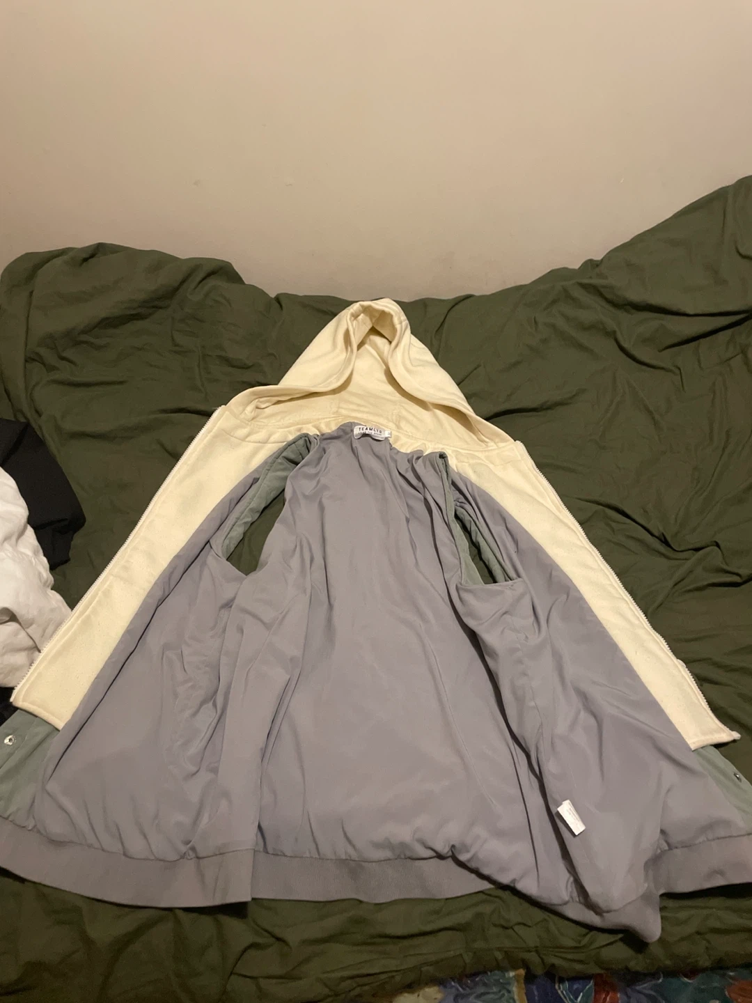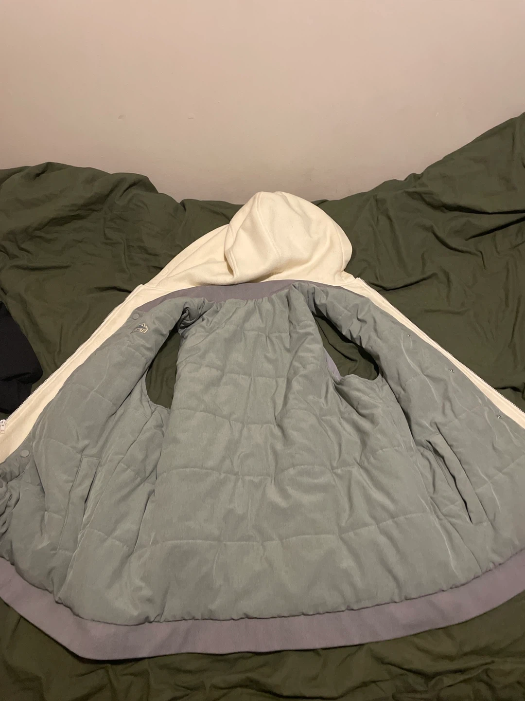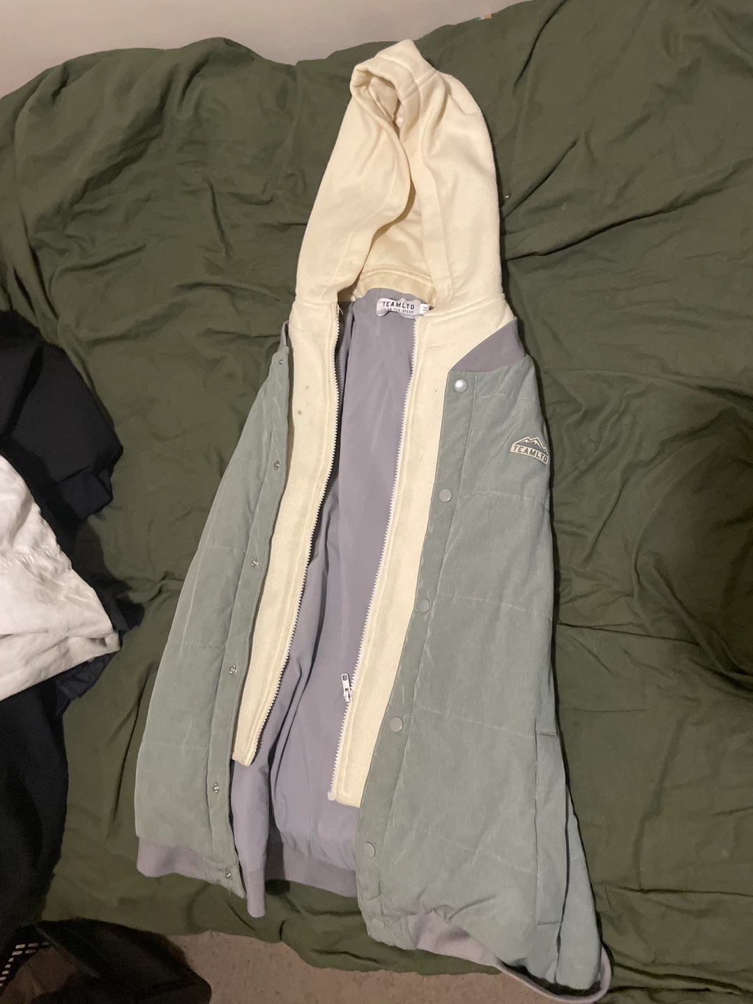 Selling a Teamlife hooded vest in size medium. The vest is a grey colour with a cream-coloured hood and grey lining. It's in good condition and would be great for layering!
