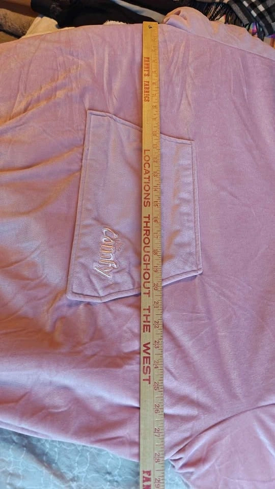 Oversized wearable blanket design. Double layer construction with Sherpa lining. Would fit a ladies small or children large. Measurements in photo. Pick up by Central park