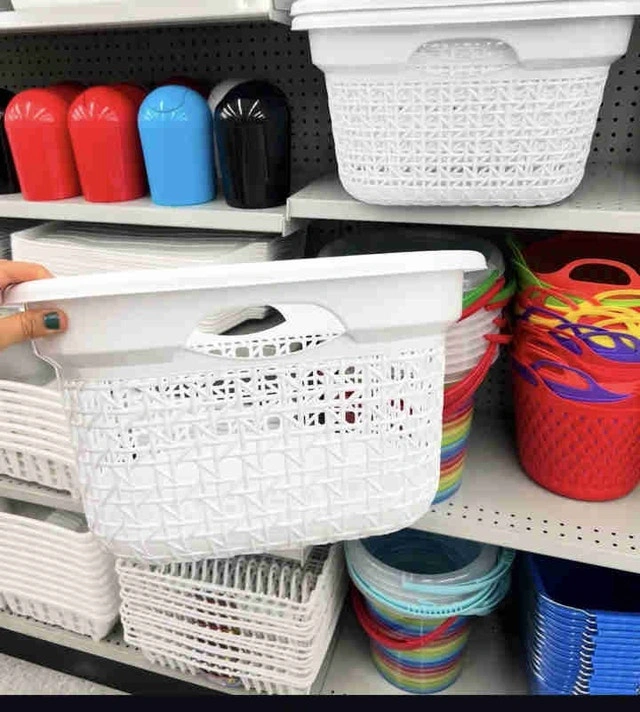 Keep your space tidy with this white plastic lidded basket, perfect for organizing various items. This basket is new but have some defects . Features: - Durable plastic construction - Includes a secure lid - Ideal for storage in any room If you're reading this, the basket is still available, ready to bring order and charm to your home!