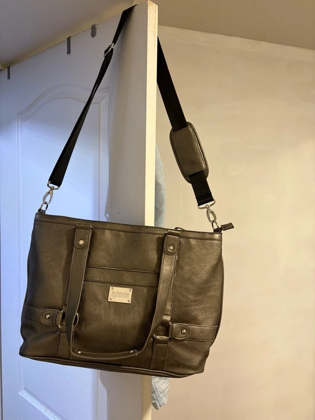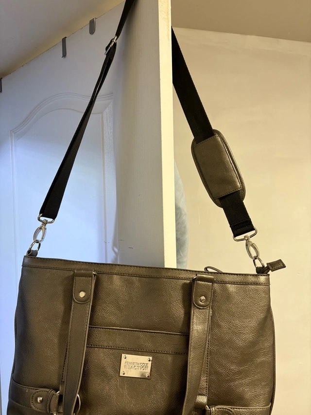 This Kenneth Cole Reaction bag is designed to carry a laptop and other essentials, making it perfect for work or travel. The bag is used and shows some signs of wear, but it is still in good condition and has plenty of life left. * Brand: Kenneth Cole Reaction * Colour: Bronze/Grey * Features: Adjustable shoulder strap, multiple compartments Looking to give this reliable bag a new home! If the ad is up, it's still available.