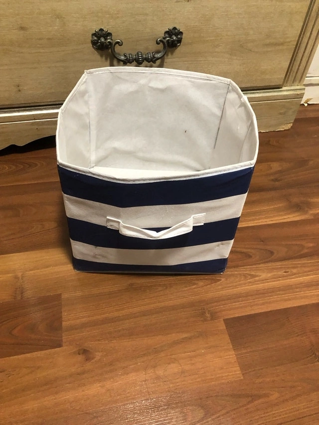 Declutter in style with this charming fabric storage bin, perfect for organizing toys, clothes, or household items. It's a used item, but is still in great condition!