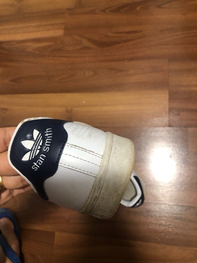 These are a pair of used Adidas Stan Smith sneakers, perfect for casual wear! Although they've been worn, they still have plenty of life left and are ready for a new owner. A classic and comfortable choice for everyday style, they're sure to complement any outfit. If the ad is up, they are available!