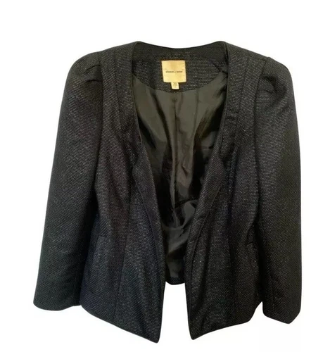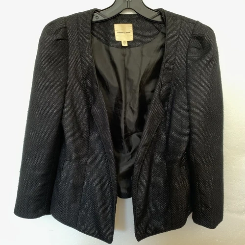 Urban Outfitters Silence + Noise black shimmer lined blazer jacket with a cropped, open front and sparkle design. Lined.
