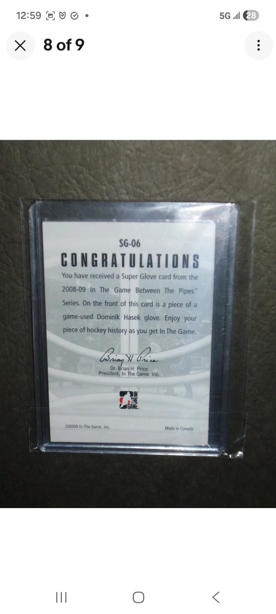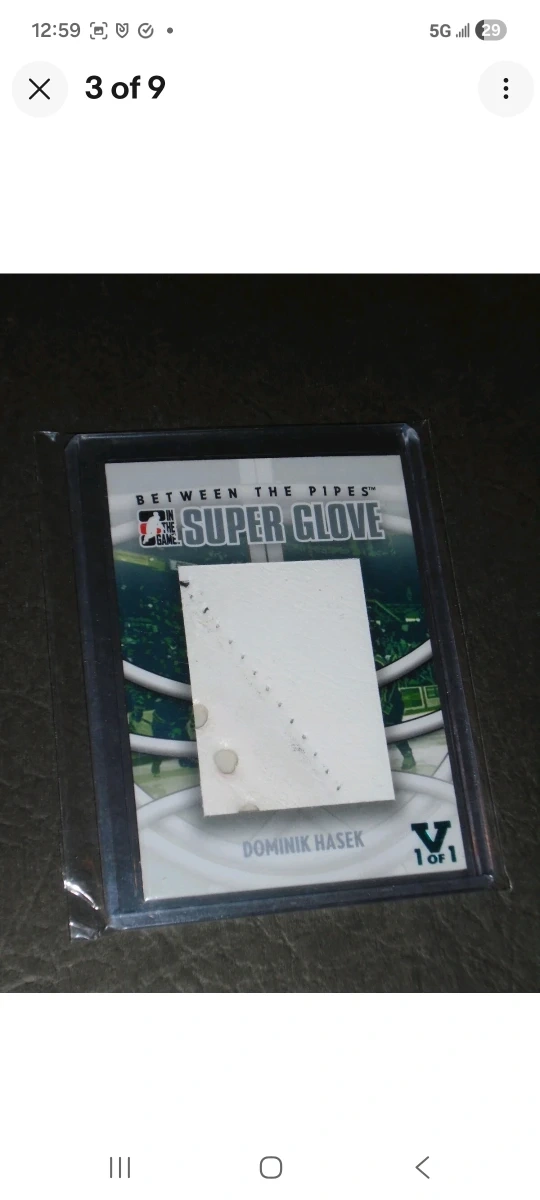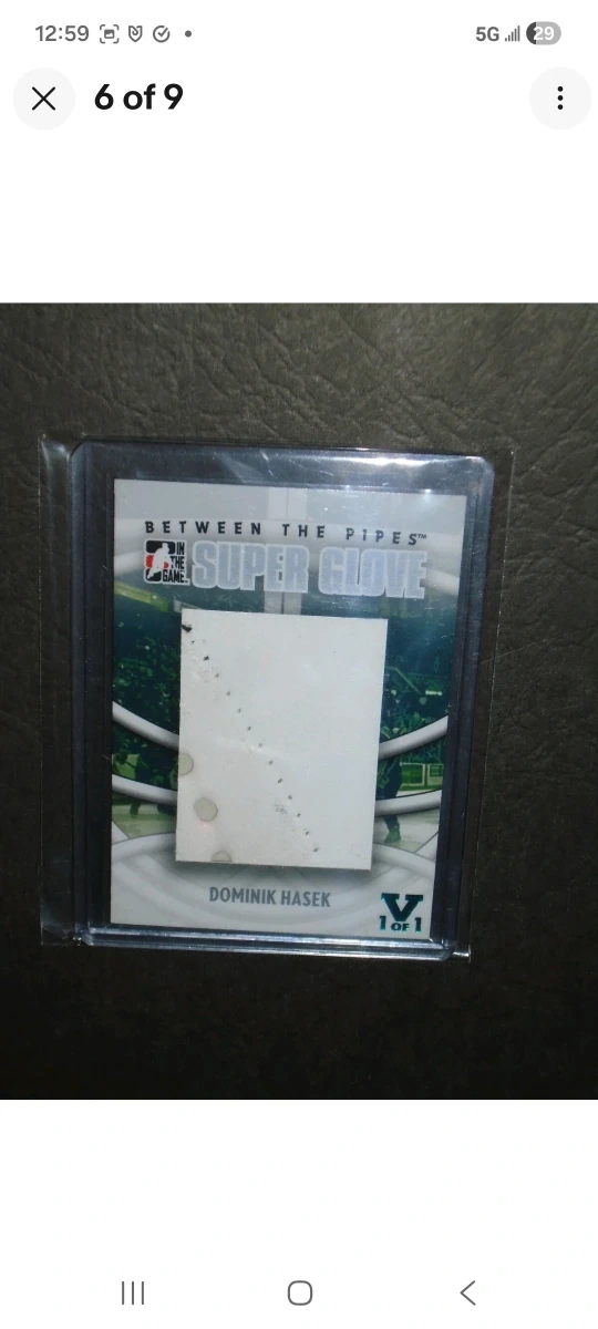 Selling a Dominik Hasek Super Glove, hockey card. It's in great condition and comes in a protective case excellent one of a kind one of one! This card can be shipped Canada wide with tracking worry-FREE. Enjoy this card!