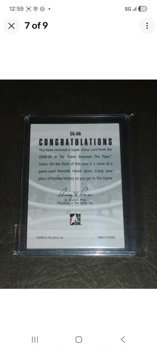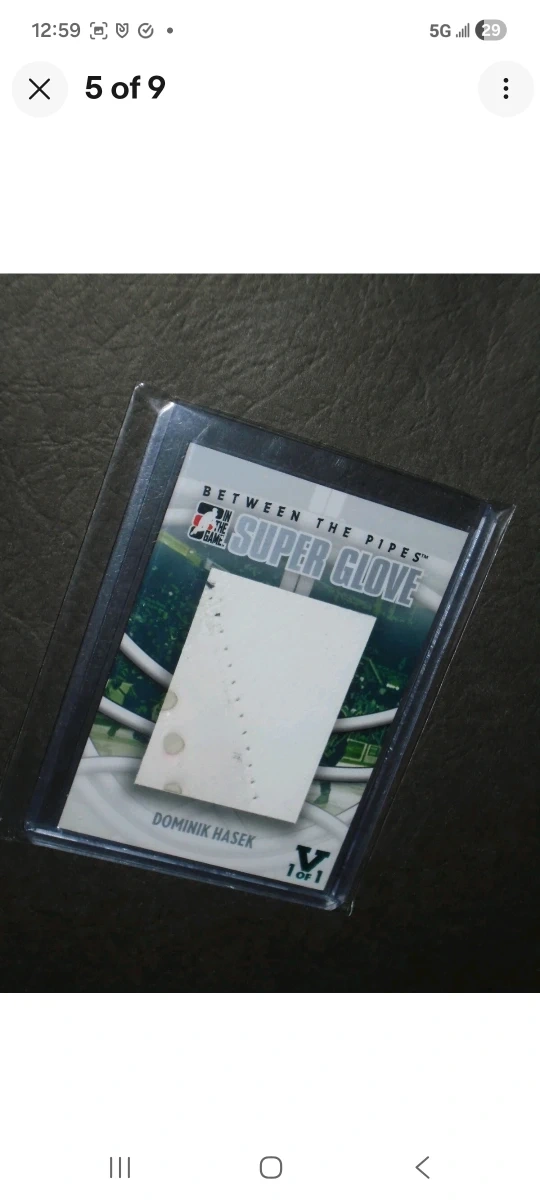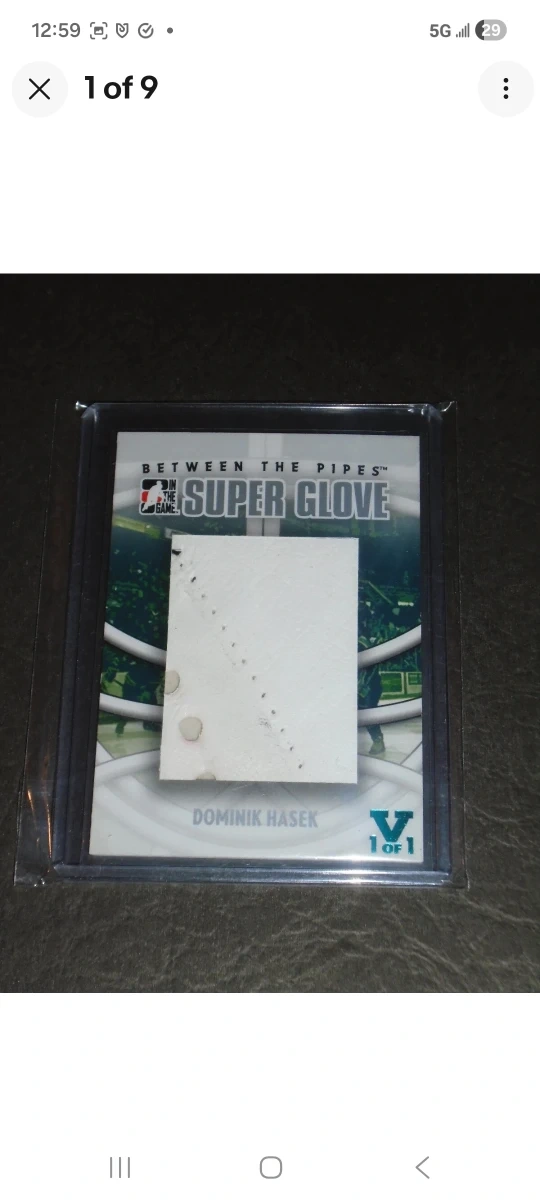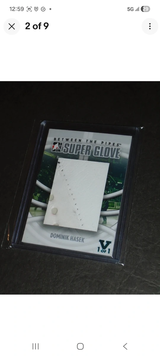 Selling a Dominik Hasek Super Glove, hockey card. It's in great condition and comes in a protective case excellent one of a kind one of one! This card can be shipped Canada wide with tracking worry-FREE. Enjoy this card!