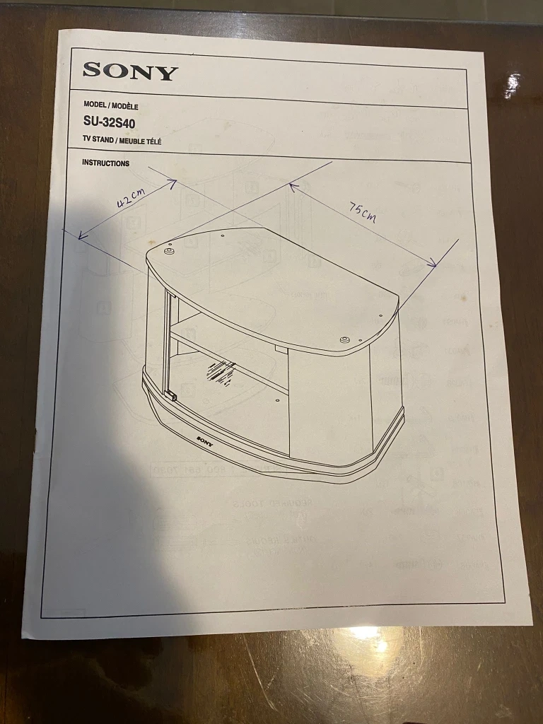 Selling a almost new Sony SU-32S40 TV stand still in its original box! Assembly is required, and the instructions are included. The assembled stand measures 42cm x 75cm. Perfect for your TV setup
