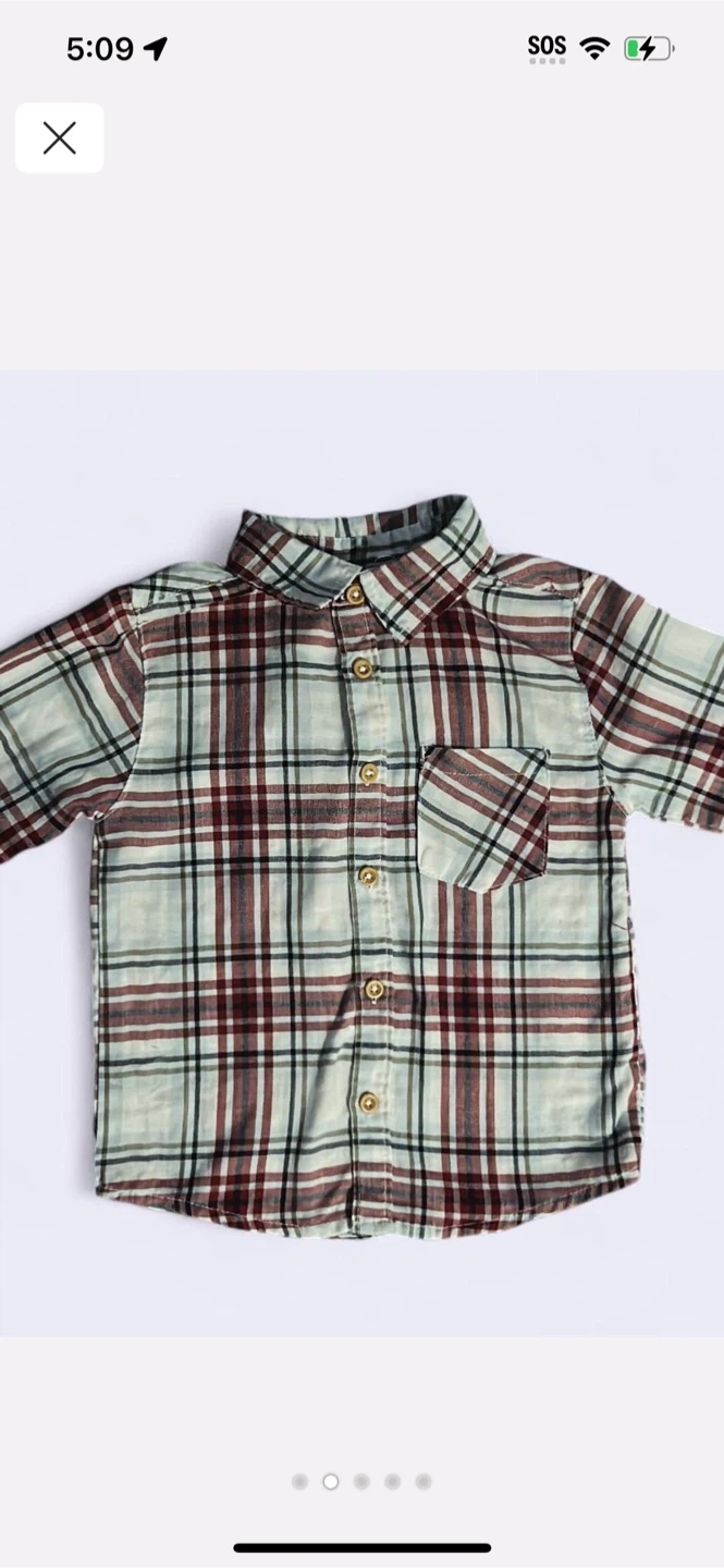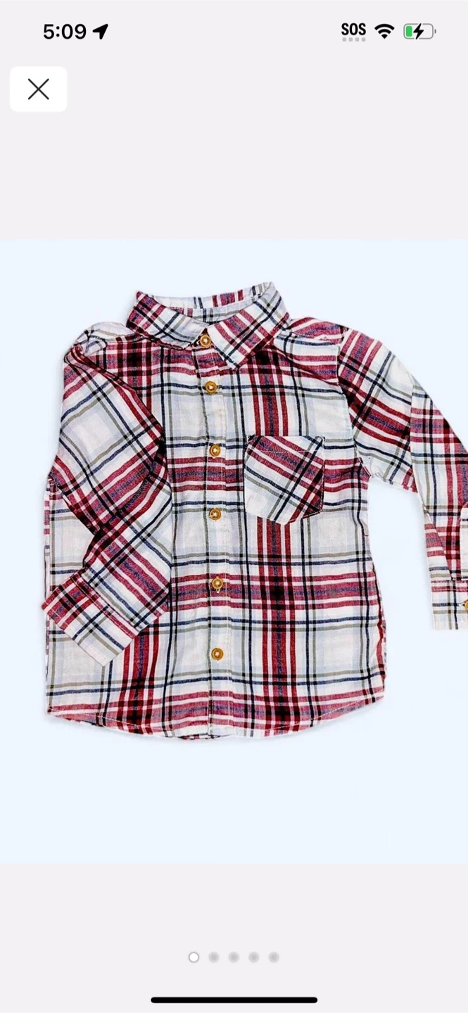 Here's a cute plaid flannel shirt from Mick Mack! 4T It's in great condition and ready for a new wardrobe. The material is 55% cotton and 45% polyester, so it's comfy and easy to care for