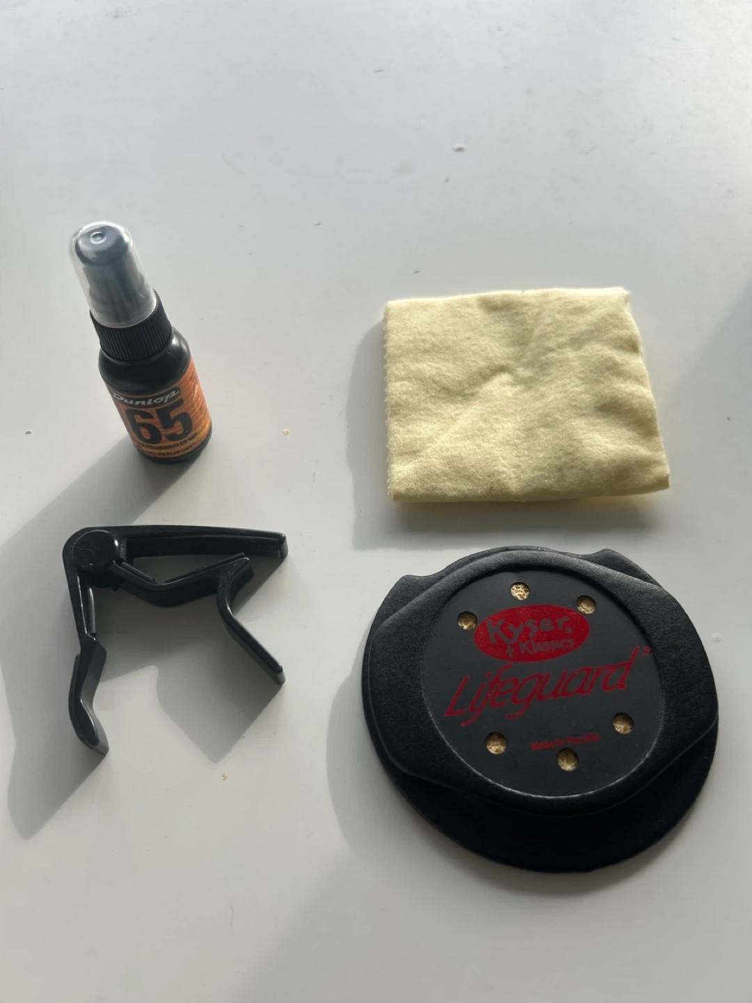 Guitar Accessories: Dunlop 65 Cleaner, Kyser Lifeguard, Capo