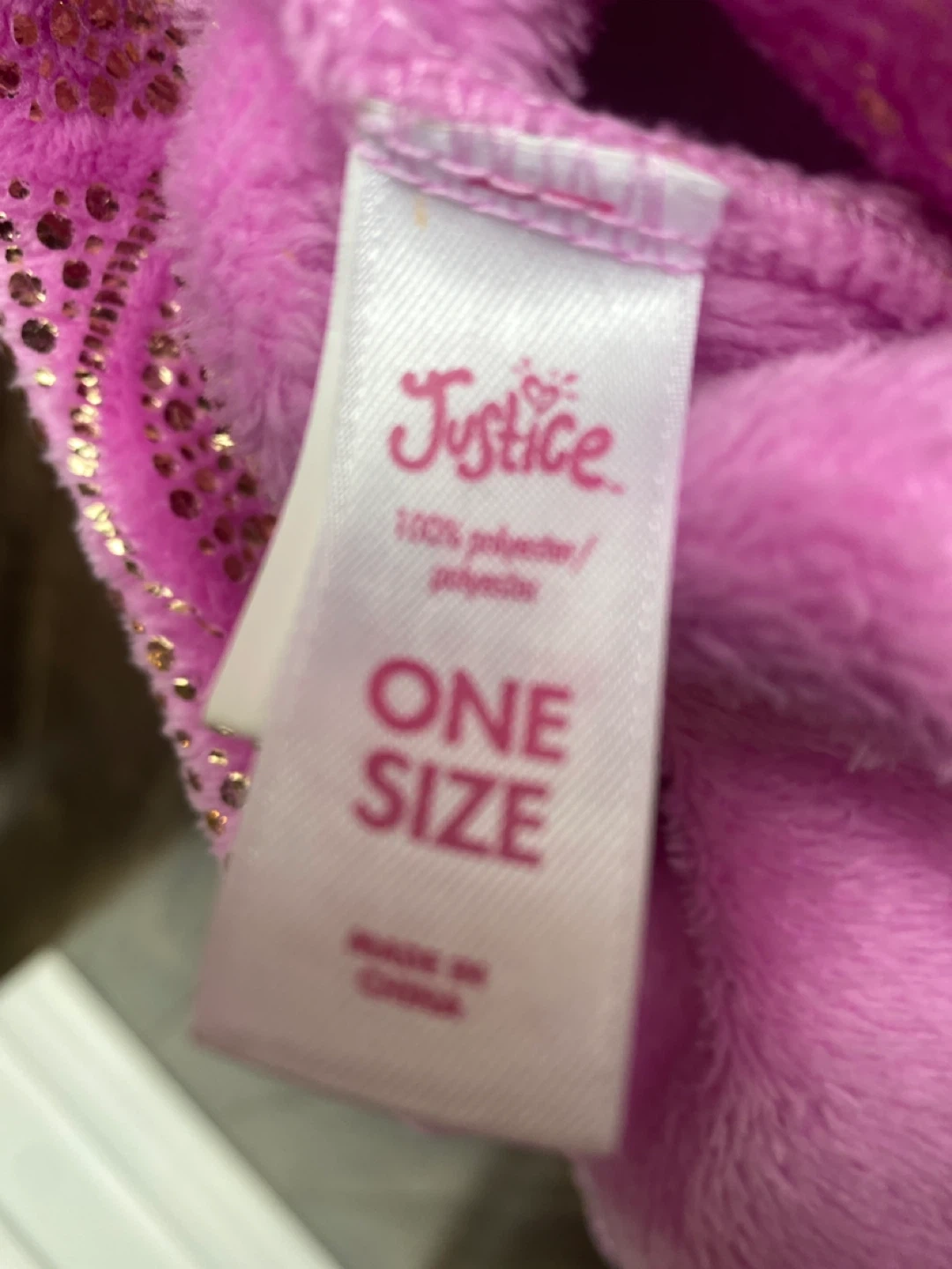 Snuggle up in this adorable mermaid tail blanket from Justice! It's a soft blanket perfect for cozying up on the couch. The blanket is pink with gold detailing and is made of 100% polyester. It's a one-size-fits-all item!