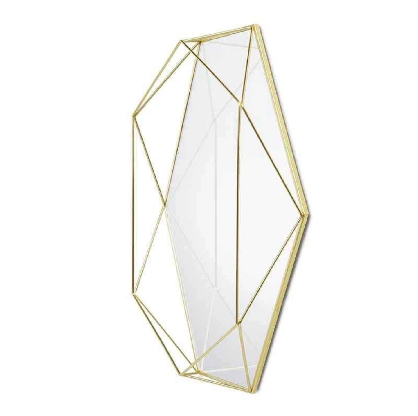 Add a touch of modern elegance to your space with this geometric mirror! The gold frame creates a stylish and eye-catching design that will enhance any room's decor