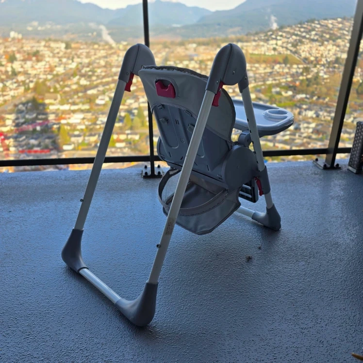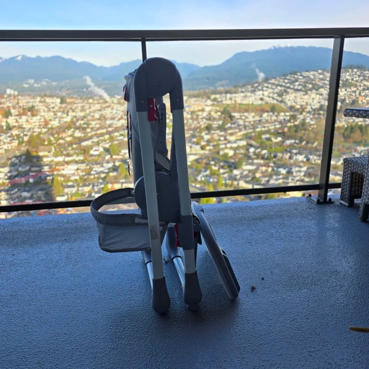 Selling a foldable baby high chair in used condition! It's perfect for feeding time and easy to store when not in use. The high chair features a removable tray and a comfortable multi position reclining seat and adjustable foot rest for your little one. Also height adjustable. It also has a safety harness to keep your baby secure. Great for babies and toddlers! The seat cushion has some cracks but doesnt affect function. Priced accordingly. Note that it sells for $100 plus tax on Amazon and Walmart.