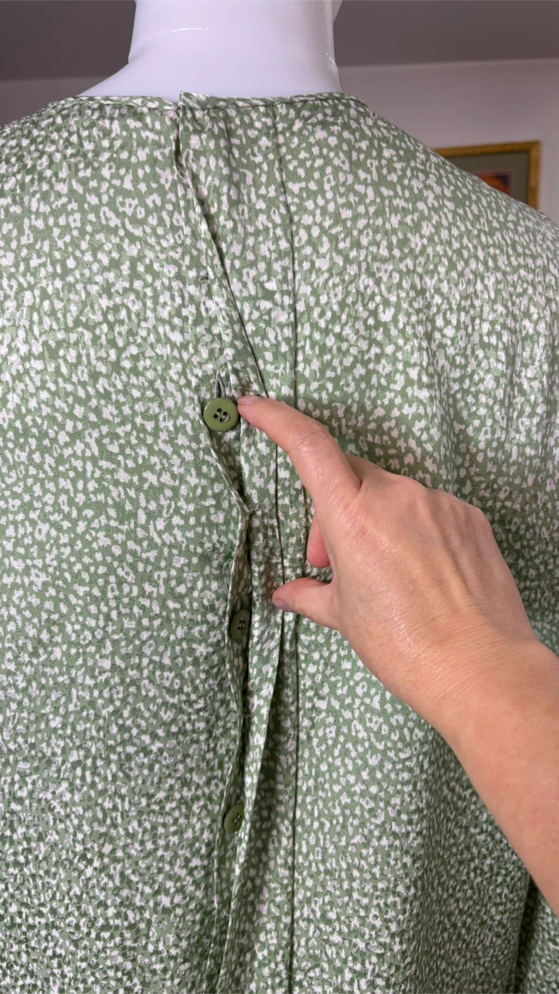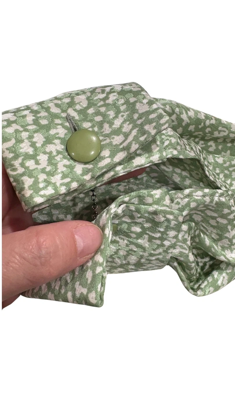 Experience the essence of Italian luxury with this exquisite Valentino Boutique silk blouse, crafted in a delicate sage-green abstract print that embodies effortless elegance with an indie–granola chic aesthetic.