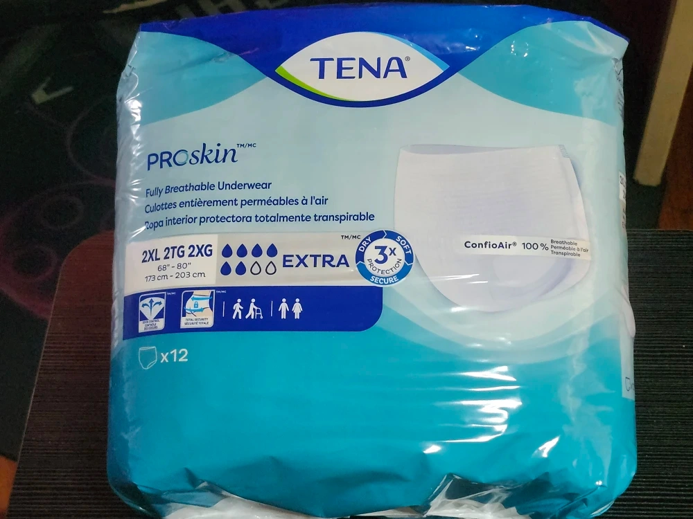 I have multiple, brand new, and unopened packs of TENA ProSkin fully breathable underwear for sale. I no longer have need of them. I'm asking $15 per pack, but I'm open to offers as well. If you want more than one pack then message me and maybe we can work out a deal. - Size: 2XL (2TG) - Fits waist sizes: 68"-80" (173 cm - 203 cm) - Pack contains 12 briefs These are designed for comfort and security, with soft, cloth-like material and inner leg cuffs for a snug fit