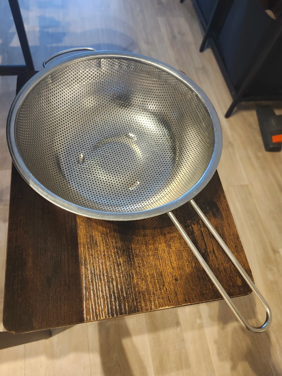 Selling a stainless steel colander. It's in great condition and ready for a new kitchen! Perfect for draining pasta or washing veggies