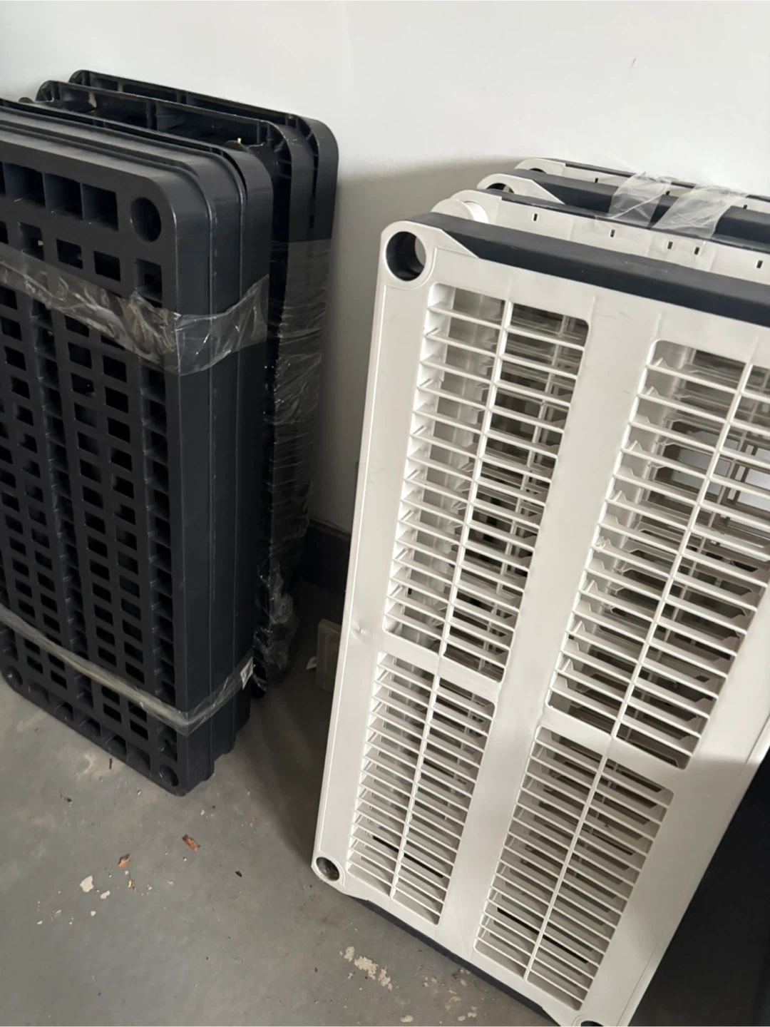 Selling some plastic storage shelves, great for organizing your space! There are black and white shelves available. They are in good condition and ready to use. Perfect for garage, basement, or closet organization