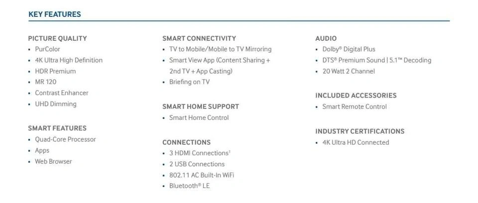 - Platform: Smart Hub with single access to Live TV, streaming services, and more