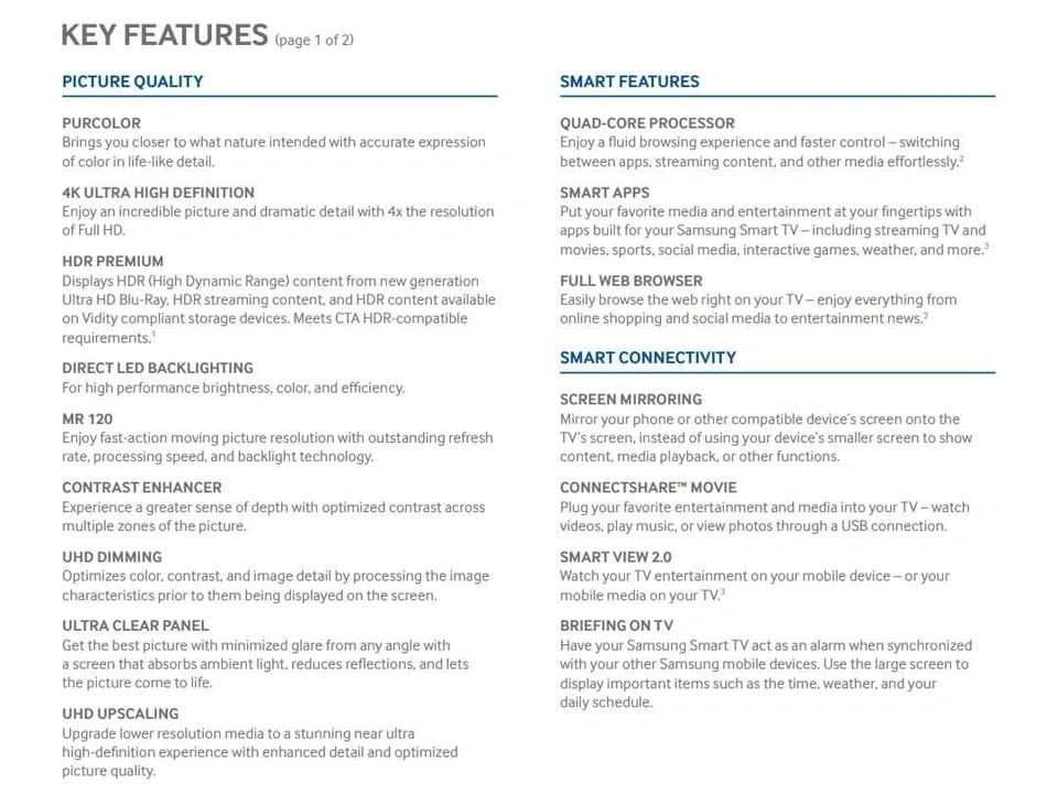- HDMI: Multiple ports, compatible with Ultra HD Blu-ray players and HDR content