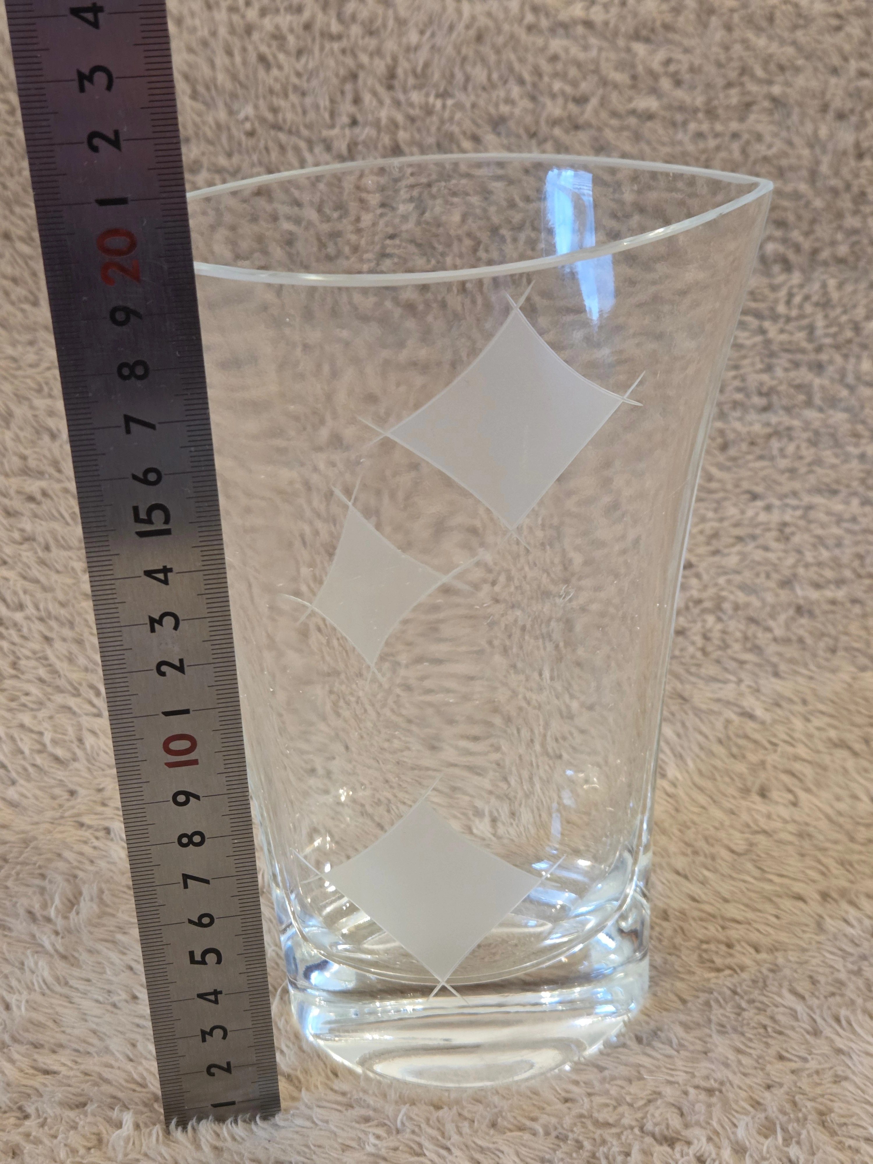 Modern clear glass vase, frosted diamond pattern, 19.5 cm