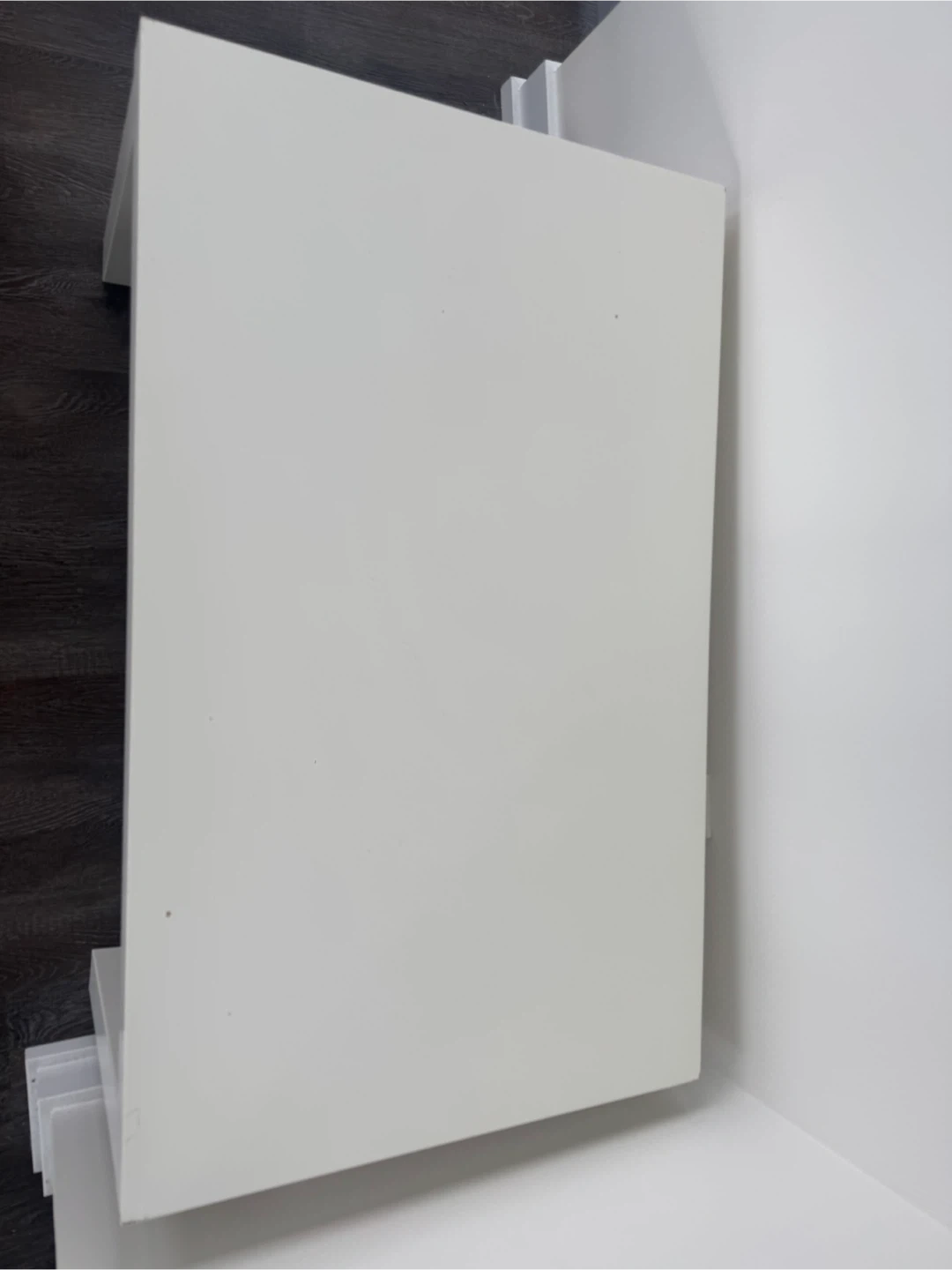 Selling a simple white side table! It has a clean, minimalist look that would fit well in any room. It also has a shelf underneath for extra storage or display