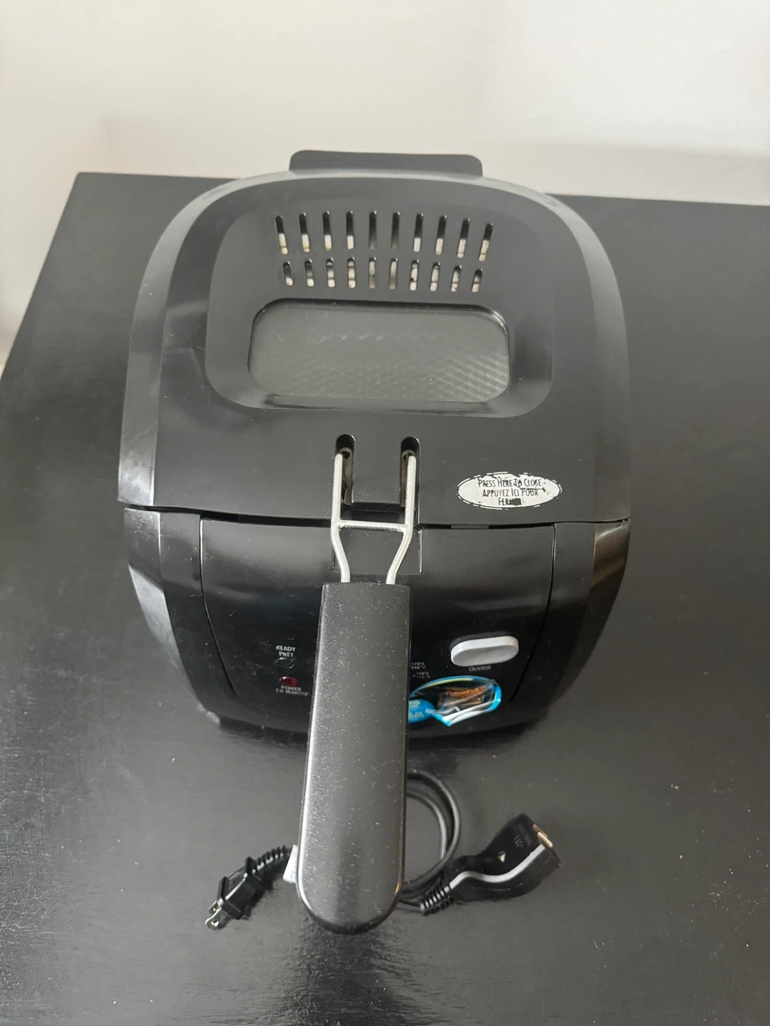 Selling a Hamilton Beach deep fryer in used condition. It comes with the basket and power cord. There is a crack in the outer shell of the fryer, but it is does not affect its function.