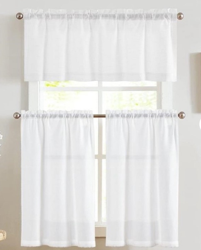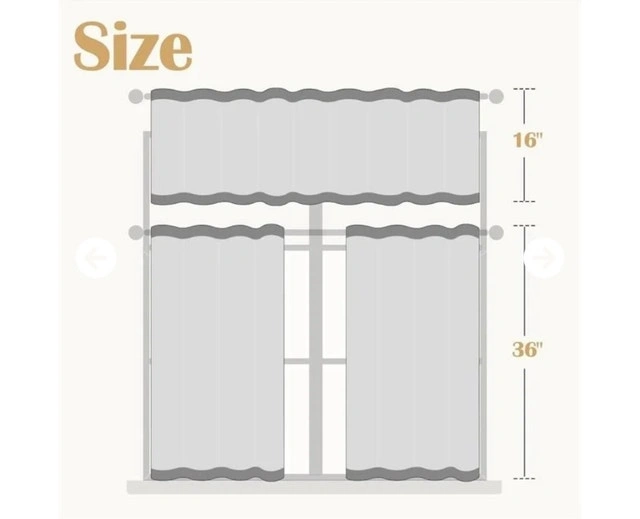 Elevate your kitchen with this JINCHAN White Kitchen Curtains Set, featuring a charming 3-piece design with tiers and a valance to beautifully cover your small window. These curtains are new, still in their original packaging, and ready to add a touch of elegance to your space. The linen blend fabric offers breathability and a lovely texture. Specifications: Each tier panel measures W26" x L36" (Tiers total W52" x L36"). Valance measurement: W52" x L16". Material: High Quality linen blend textured fabric. Looking to refresh your kitchen's look? These curtains could be just the thing! And hey, if the ad's still up, you know they're still waiting to find a new home.