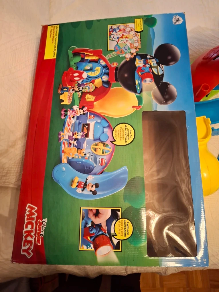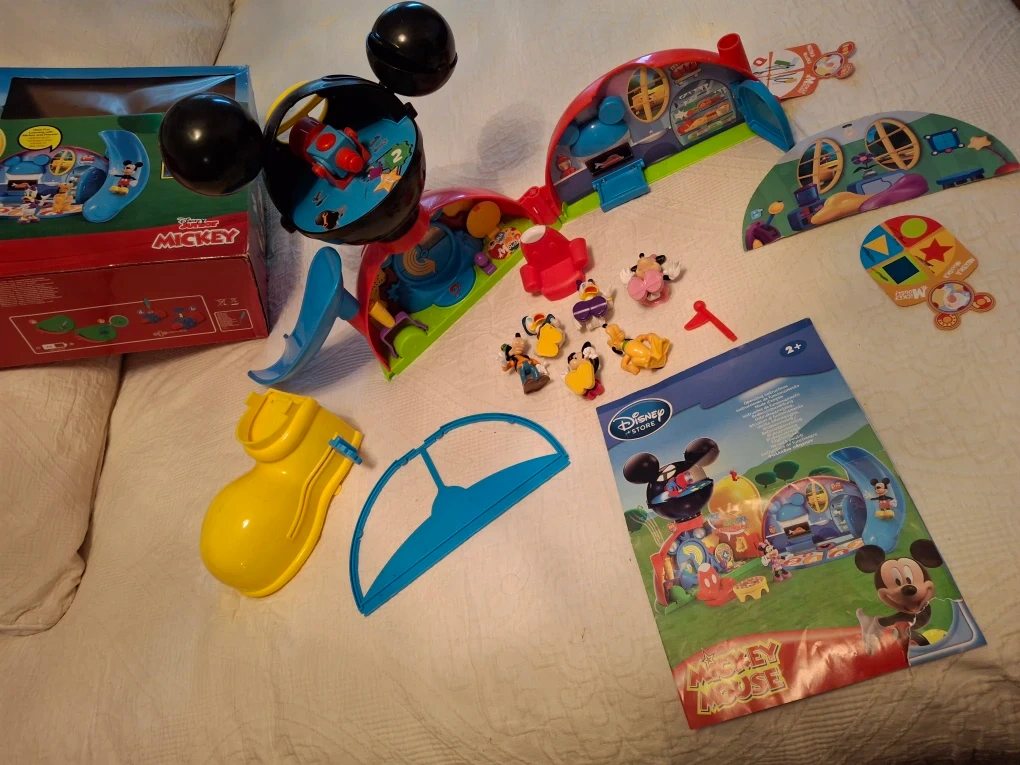 Selling a gently used Disney Junior Mickey Mouse Clubhouse playset! It comes with a variety of accessories and figurines, including Mickey, Minnie, Donald, Goofy, and Pluto. Perfect for little ones aged 2+ who love Mickey Mouse!