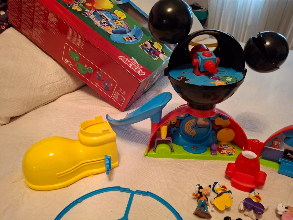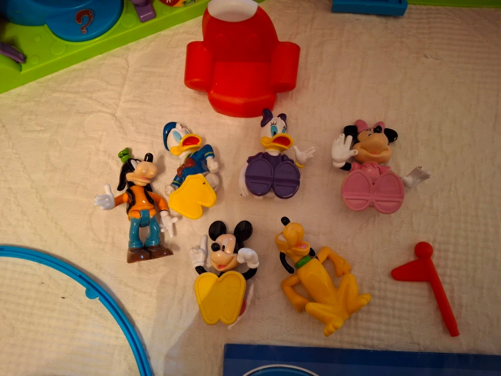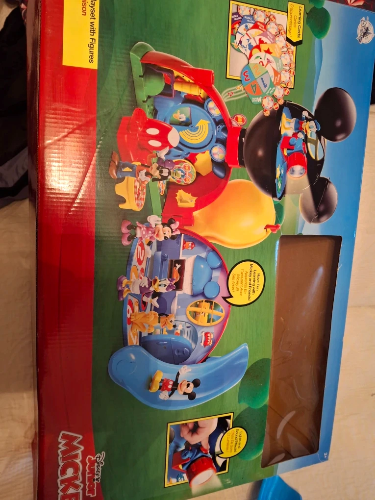 Selling a gently used Disney Junior Mickey Mouse Clubhouse playset! It comes with a variety of accessories and figurines, including Mickey, Minnie, Donald, Goofy, and Pluto. Perfect for little ones aged 2+ who love Mickey Mouse!