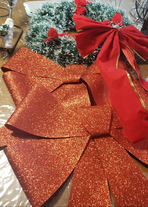 Selling some Christmas decorations! Included is a Santa-themed candle rack and some festive red bows. Perfect for adding a touch of holiday cheer to your home