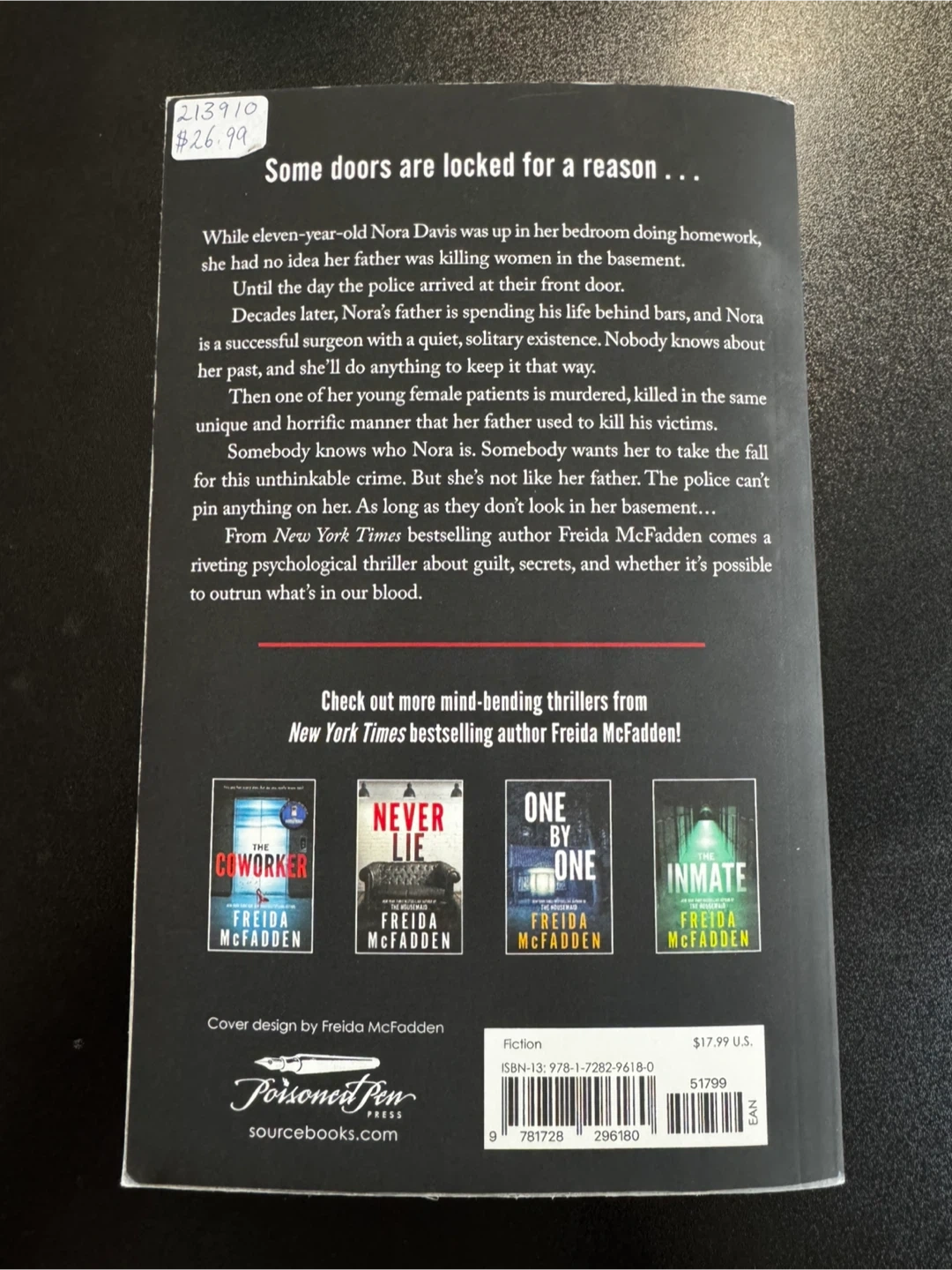 Selling "The Locked Door" by Freida McFadden! It's a riveting psychological thriller about guilt and secrets. Originally bought for $26.99. Check out more mind-bending thrillers from New York Times bestselling author Freida McFadden!