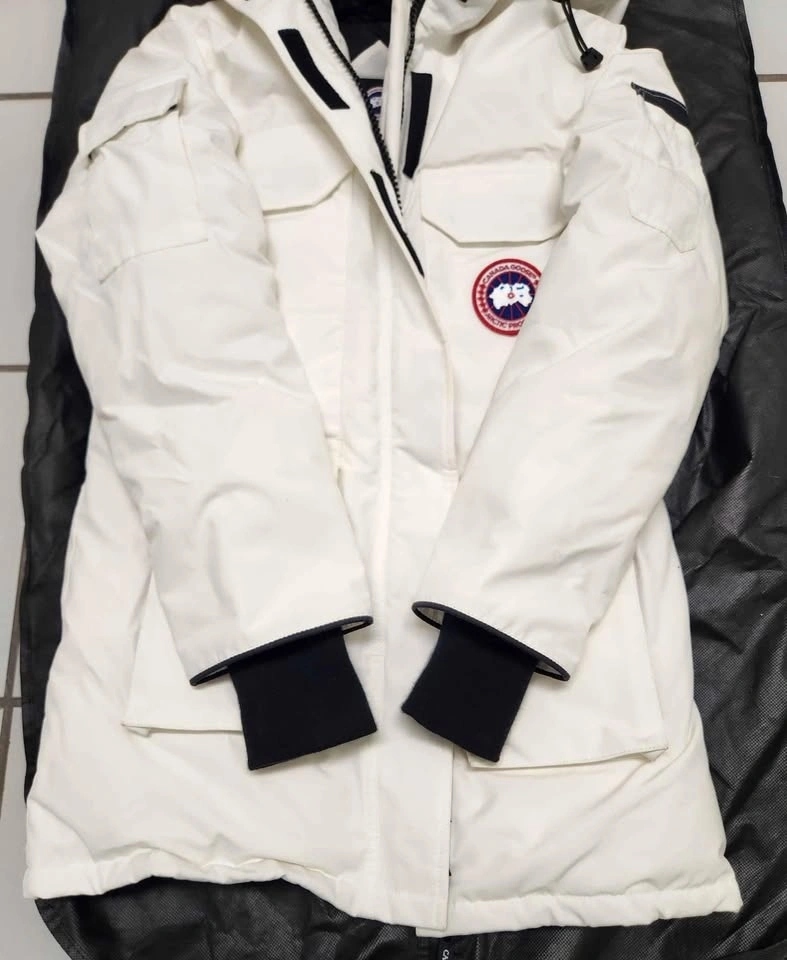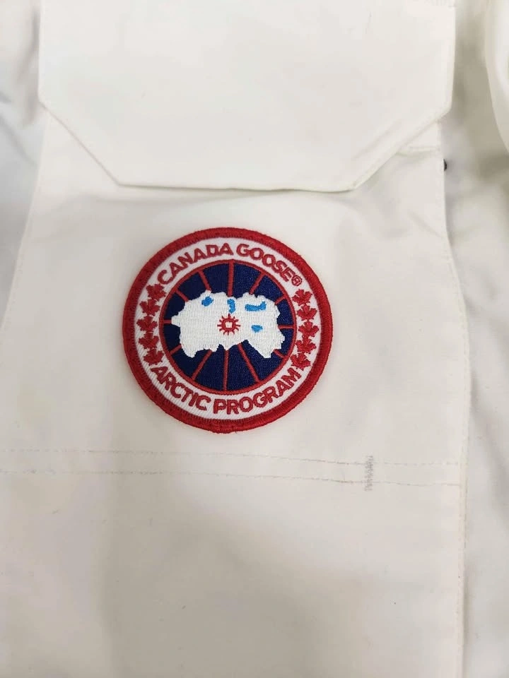 Women's White XS Canada Goose Expedition Parka with detachable fur hood trim. Brand new in perfect condition. Tried on and was too small. Missed the 30 day return policy. Has been stored in Canada Goose Jacket bag since purchased. Originally bought for $2400 after tax and shipping. Don't have receipt and original paper tags are not attached to jacket. Stitched inside tags are shown in photos to show it's authentic.