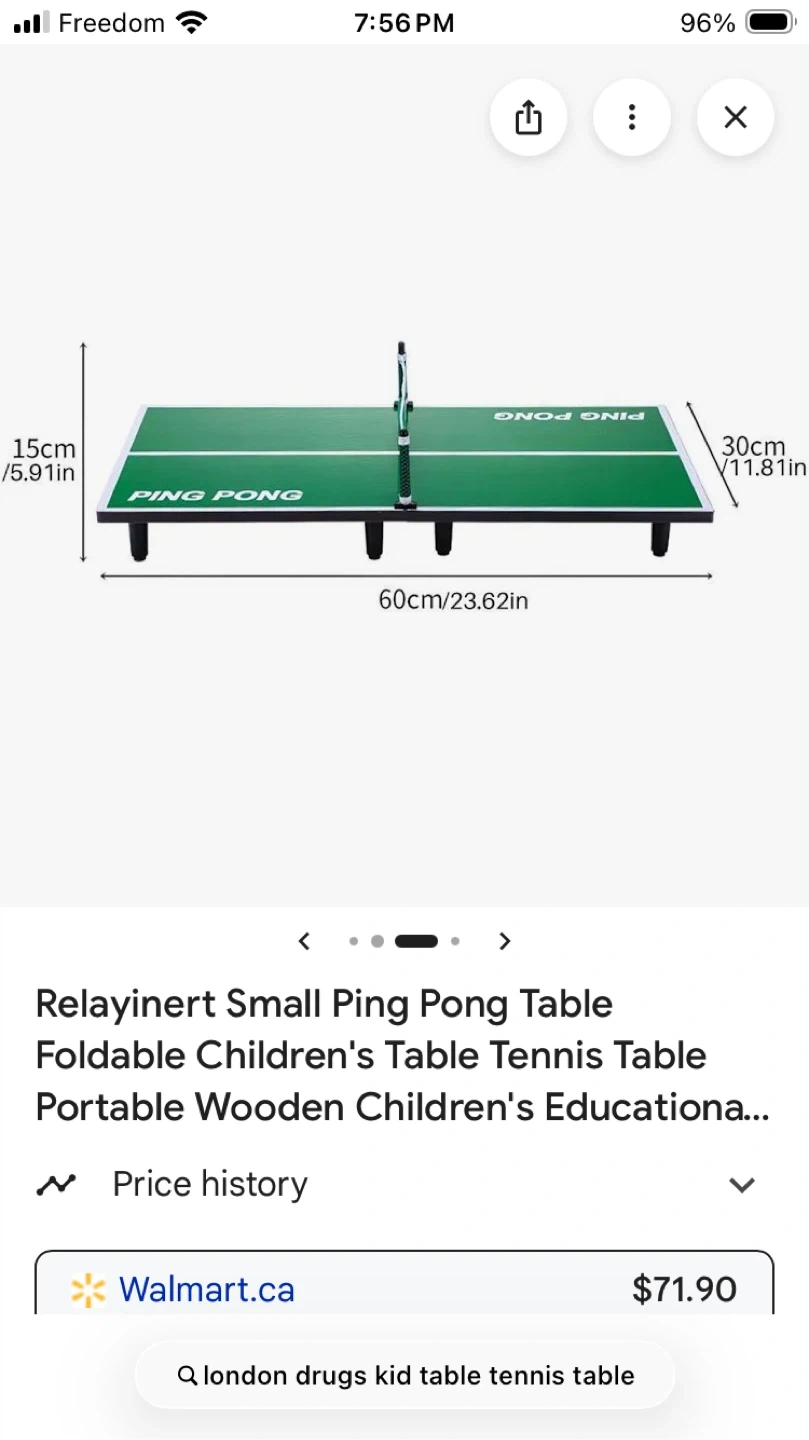Open to offers/Cash only/DOOR PICK UP HASTINGS SUNRISE - Selling a tabletop ping pong game from Collection by London Drugs! It's perfect for ages 4+. The set includes a ping pong table, two nets, two paddles, and one ping pong ball. Some assembly is required, but it's super easy to set up. Comes in the original box! (2 Feet in length / 4 inches in Width )