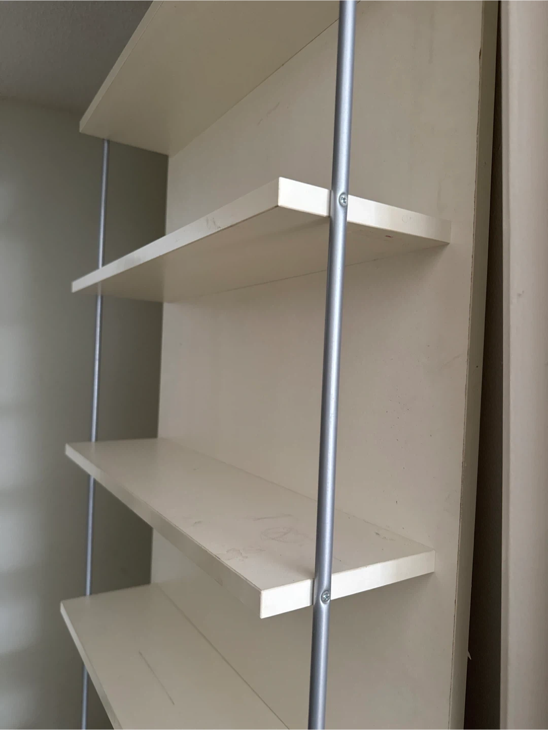 Selling a tall shelf unit in good condition! It features a clean, white finish with multiple shelves, perfect for storage or display. It's a great way to organize your space!