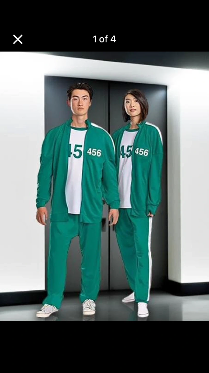 Selling a Squid Game track suit costume. It's a two-piece set including the jacket and pants. Size is Medium to Large Perfect for Halloween or costume parties!
