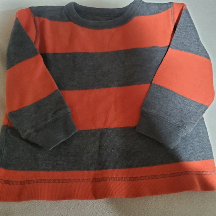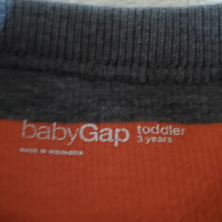 Baby Gap toddler shirt, size 3 years. It features a striped design in orange and grey. Great for everyday wear!