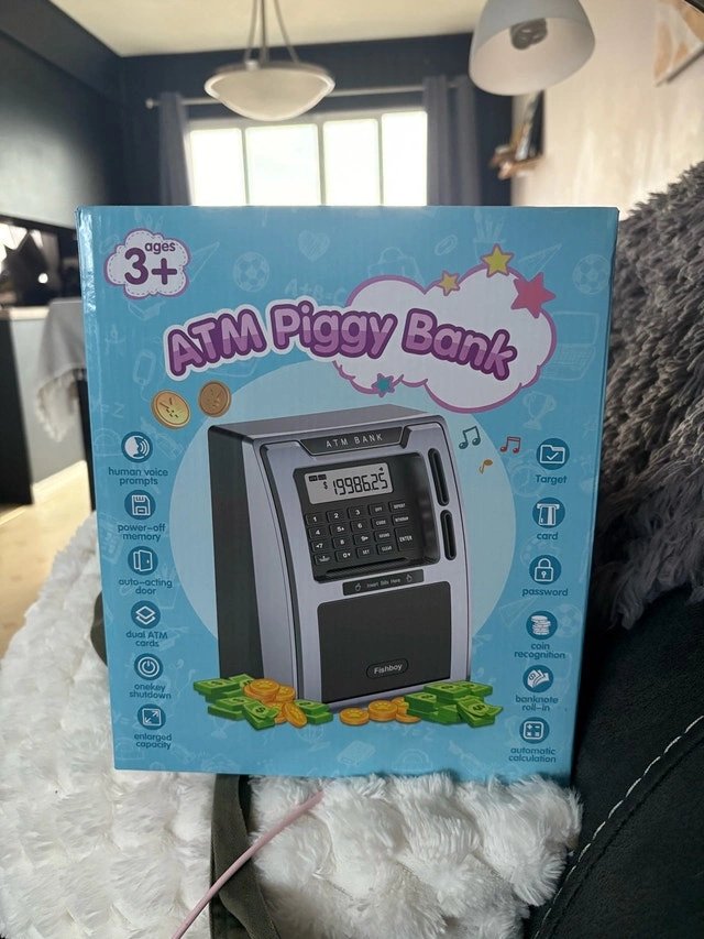Never opened, in original packaging. Canadian Dollars Talking ATM Piggy Bank for Kids with Dual Debit Cards, Power-Off Memory, Auto-Opening Drawer for Real Money for Boys, Onekey Shutdown, Bill Feeder, Coin Recognition