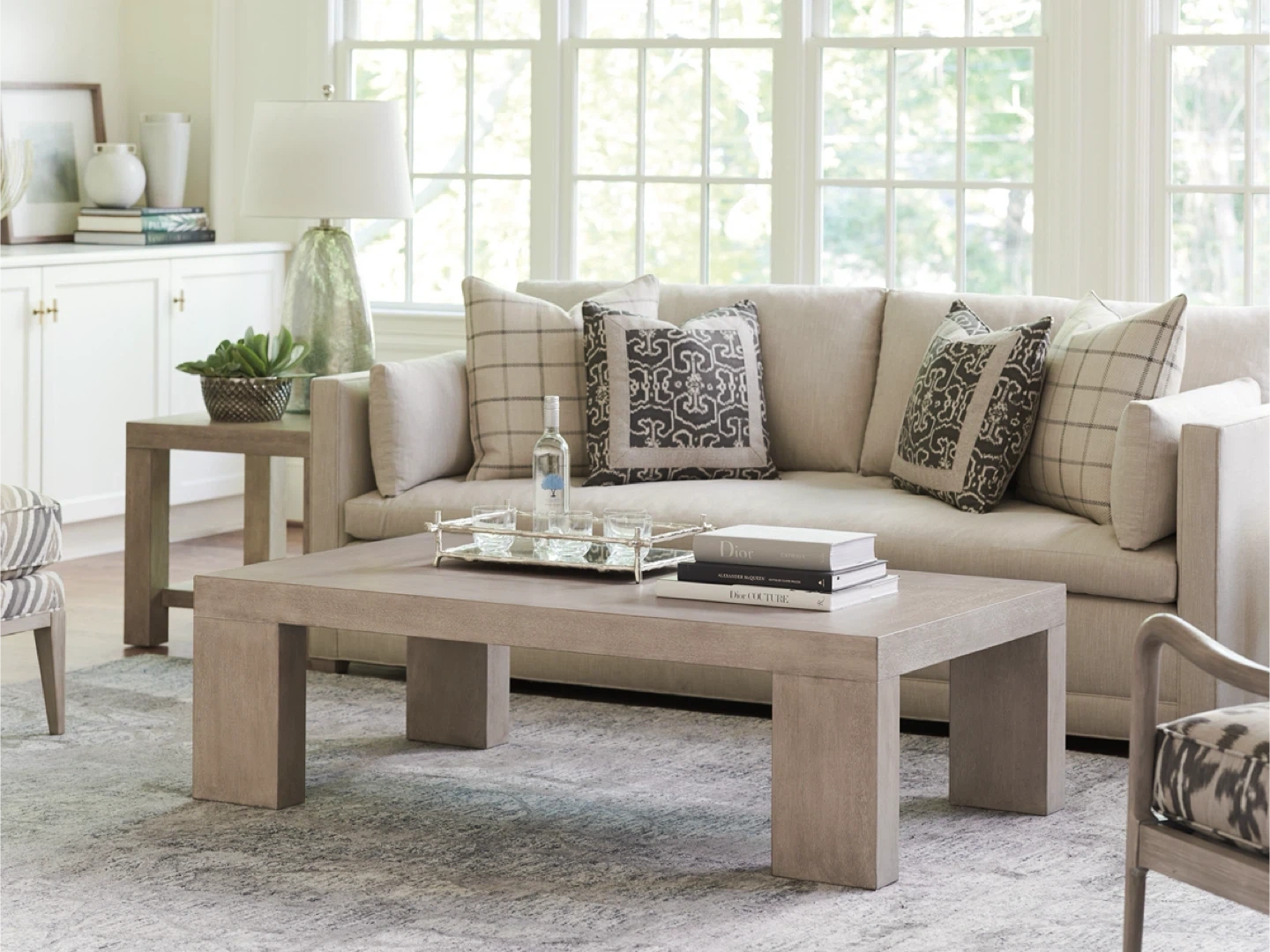 It's a beautiful piece with dimensions of 58W x 32D x 17H inches.