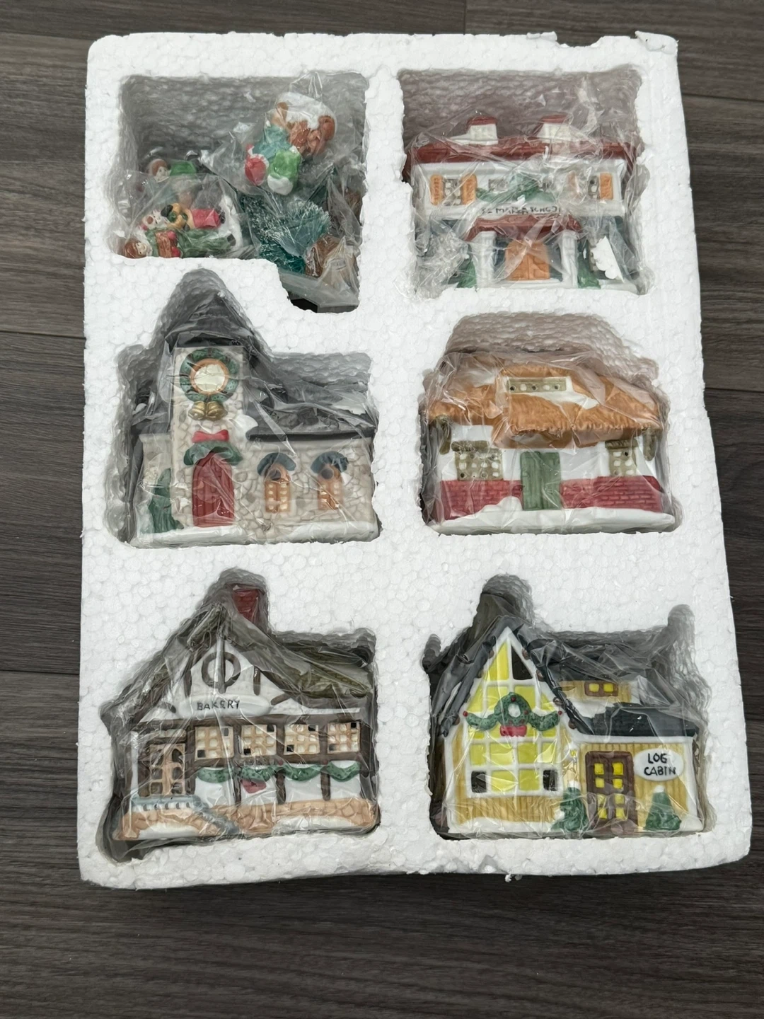 Selling a Santa's Best porcelain collectables miniature light house set. It's an illuminated, hand-painted set that's battery operated. The set comes in its original box.
