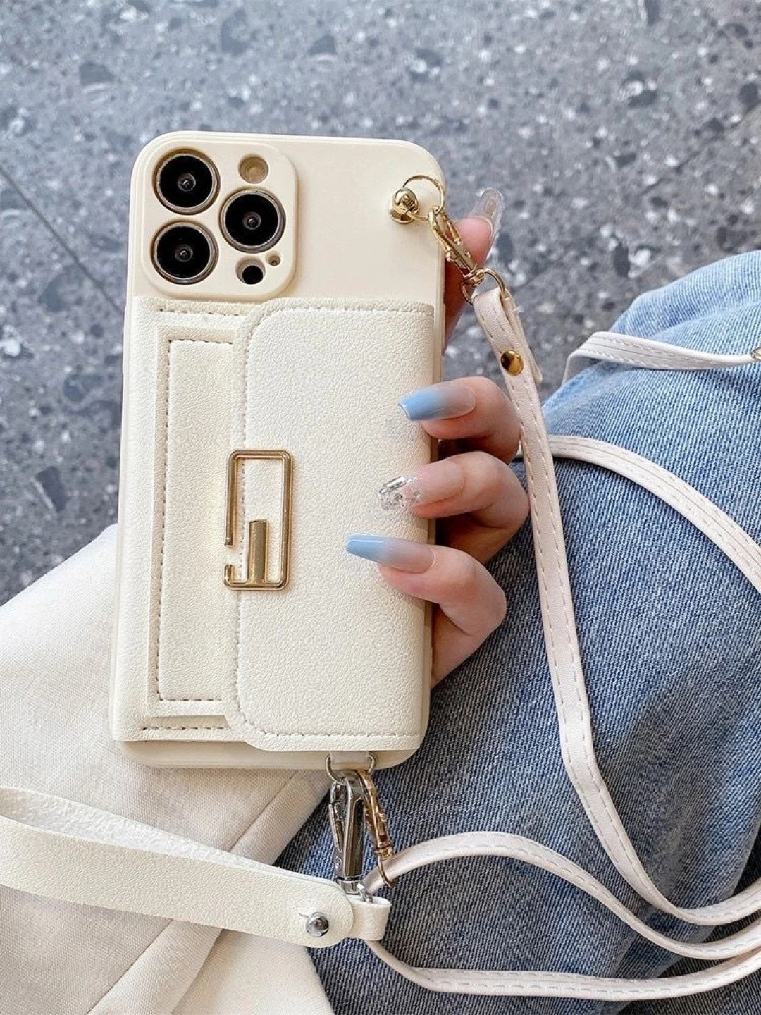 Stylish and practical case bag for iPhone 15 Pro Max, featuring two interchangeable straps: