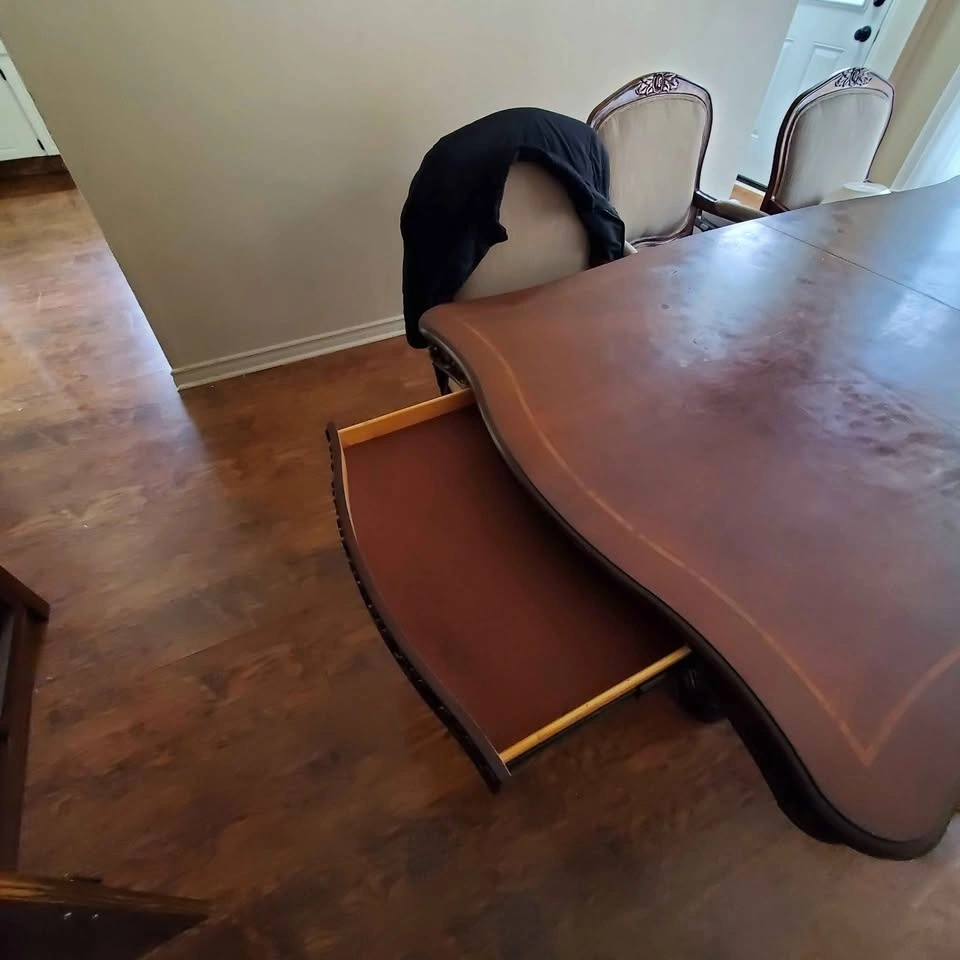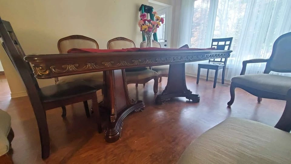 This set is extremely solid, heavy, and well-built. The craftsmanship and detailing stand out—carved scrollwork, rich wood finish, and elegantly shaped legs. Great for large family gatherings or formal entertaining.
