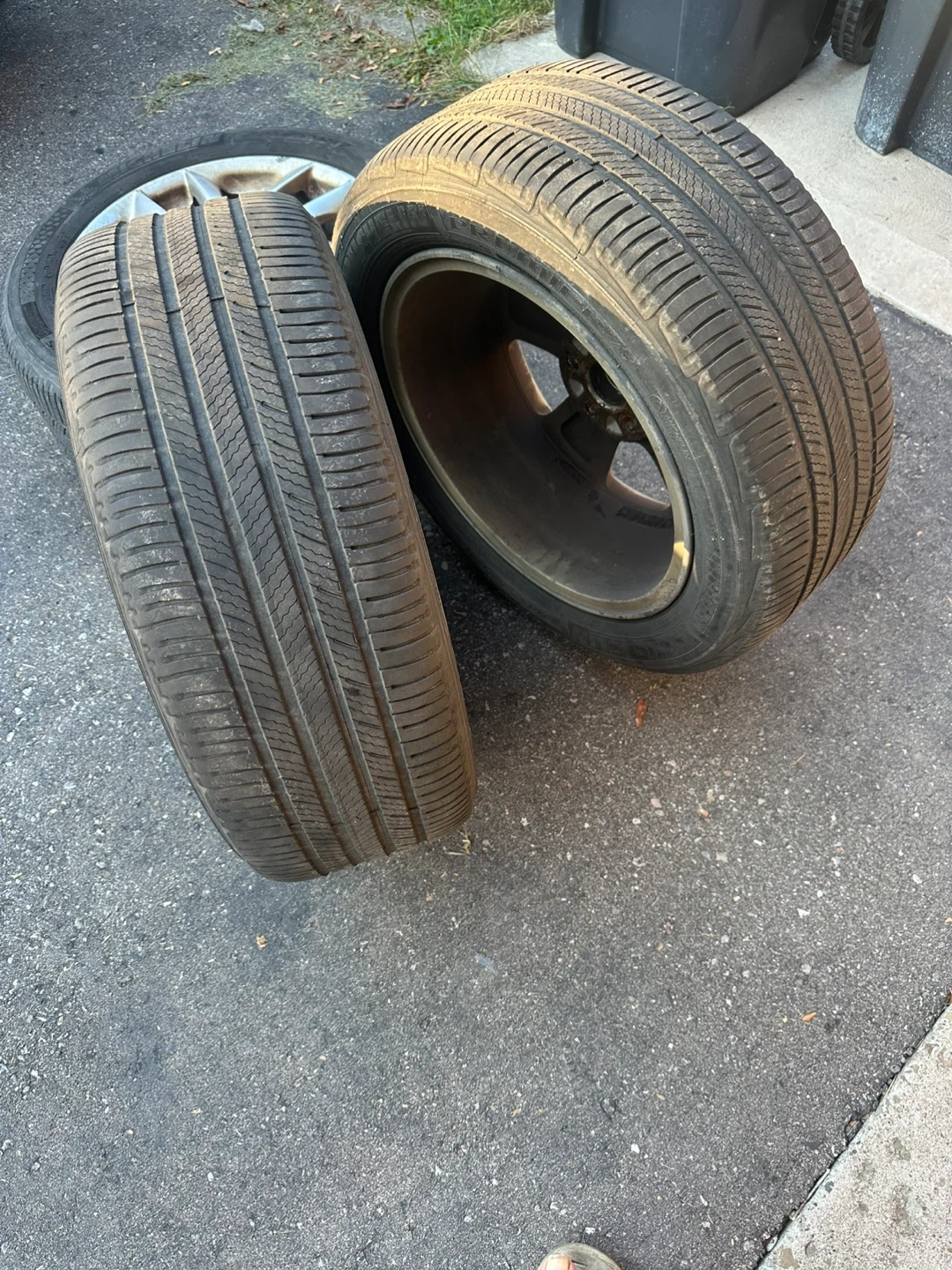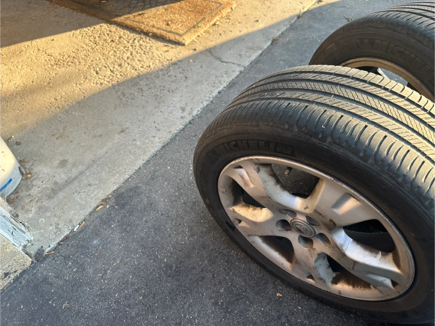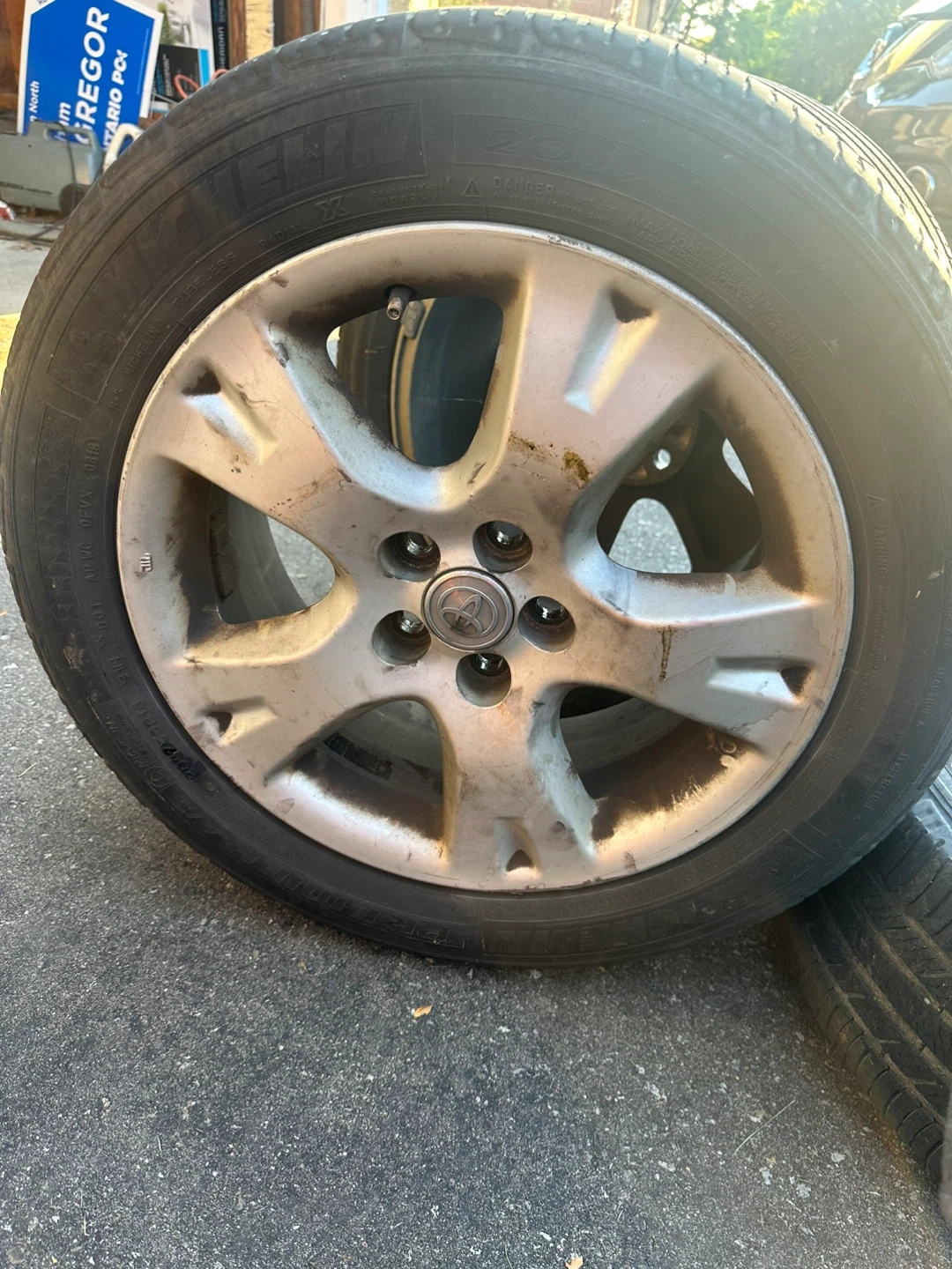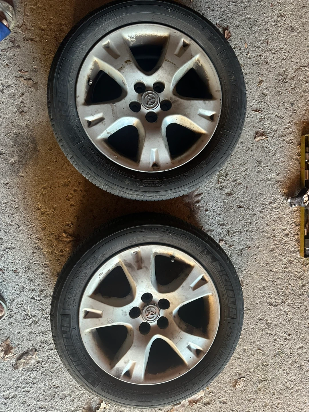 Selling two Michelin tires mounted on Toyota rims. They're used but still have some life left in them! Perfect for a spare set or to replace worn tires.