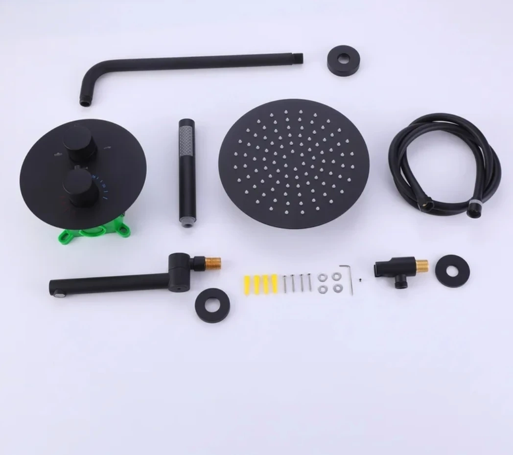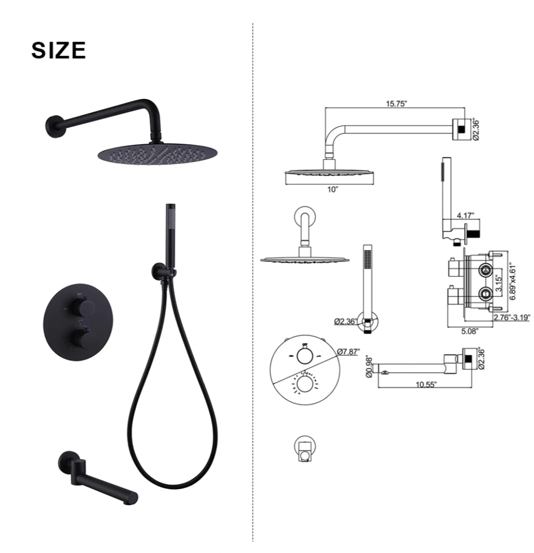 Material :High-quality stainless steel 304 rainfall shower head and solid brass pressure balancing shower mixer valve construction, matte black finish and brass combination are anti-corrosion and anti-rust, ensuring durability and dependability.